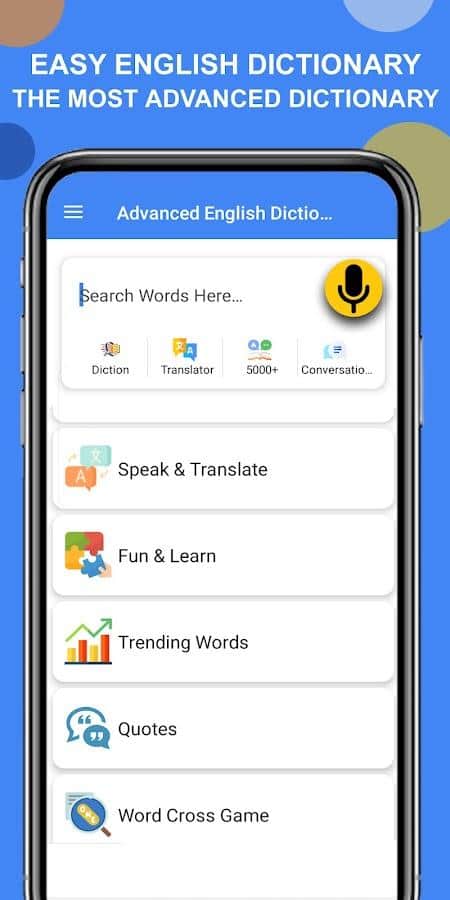 Advanced English Dictionary - незаменимый инструмент для всех, кто говорит по-английски как на родном языке или изучает его. Независимо от того, являетесь ли вы новичком в изучении языка или опытным носителем, этот обширный словарь может помочь вам улучшить свои знания и понимание английского языка. С более чем 500 тысячами слов, значений и определений, а также примерами, этот словарь позволяет вам изучать новые слова, изучать сложные слова и учиться на примерах. Благодаря таким функциям, как “Слово дня”, тезаурус, история недавно просмотренных слов и избранные слова для дальнейшего использования, этот расширенный английский словарь обеспечивает легкий доступ к информации, которую вы ищете. Будучи автономной версией, она позволяет вам получать значения, определения и тезаурусы слов без необходимости подключения к Интернету.