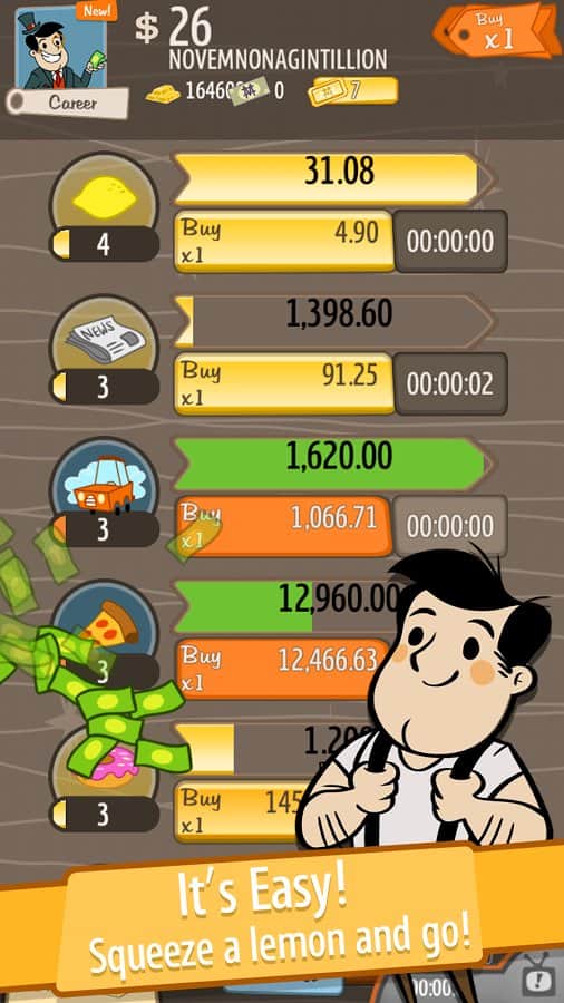 AdVenture Capitalist – игра в которой вы сможете стать богачом и попробовать на себе вкус богатой жизни. Начните свое дело с маленького бизнеса и раскрутите его так, чтобы он приносил вам достаточное количество денег, чтобы вам не пришлось больше работать. Начните свое путешествие в мир всемирной экономики и больших денег. Зарабатывайте как можно больше денег и приобретайте на них различные блага, красивые машины, роскошные дома, огромные фабрики и комбинаты. Доминируйте на международном рынке, приобретайте самые новые обновления для бизнеса и старайтесь повысить свою прибыль до небывалых размеров.