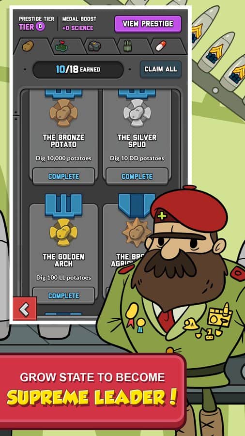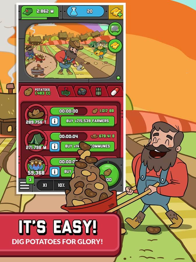 AdVenture Communist - динамичный кликкер в котором вам предстоит взять на себя роль правителя коммунистической державы, а главная валюта страны будет картофель, именно используя его вы и будете развивать страну. По мере накопления данного ресурса вы сможете открыть различные возможности, построить всевозможные постройки и прочее. В игре отличная графика и увлекательный геймплей, который привлечет всех поклонников жанра.