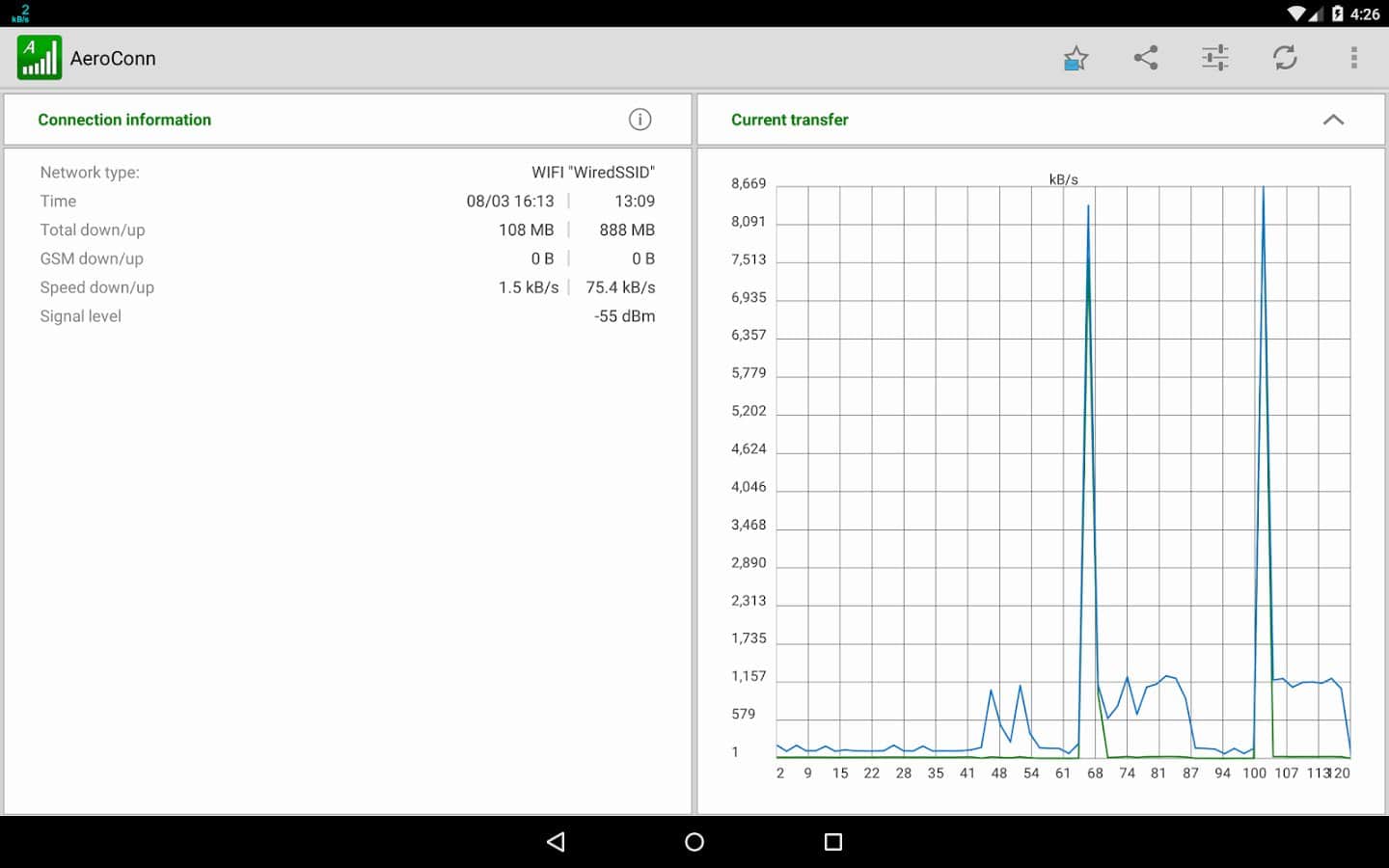 AeroConn - network monitoring - Держите свой интернет трафик под контролем, с этим приложением это очень просто. Здесь вы найдете все основные функции, которые облегчат вам работу с трафиком, не у всех есть безлимитный интернет, и когда он отсутствует, человеку приходиться довольно жестко следить за тем куда он тратит свои мегабайты. А когда бесплатный лимит заканчивается, начинают пропадать деньги. Так вот это приложение не только выведет ваш трафик на экран, при этом поделив его на тот который используется через wi-fi и тот который использует моб. интернет, но так же даст все данные о том сколько вы его использовали, в какой промежуток времени, и главное куда был использован этот трафик. Так же здесь есть удобный виджет.