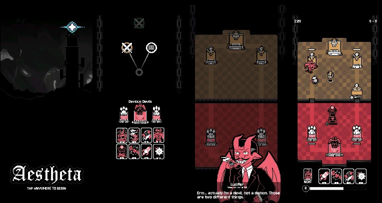 Aestheta — это рогалик-королевская битва, где воины из разных эпох и миров сражаются за право загадать желание, используя стратегию и тактику на поле боя. На далекой луне стоит Башня Aestheta, где раз в двадцать лет падает загадочная звезда Aestheta, исполняющая желания. Чтобы добраться до нее, воины со всего космоса участвуют в смертельном турнире, но лишь один сможет подняться на вершину!