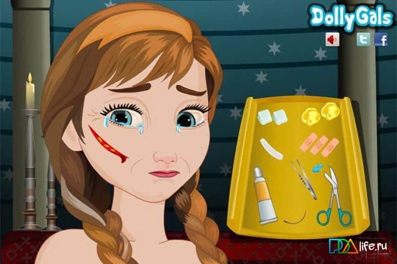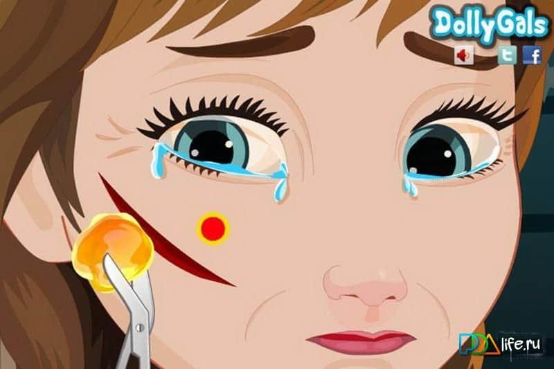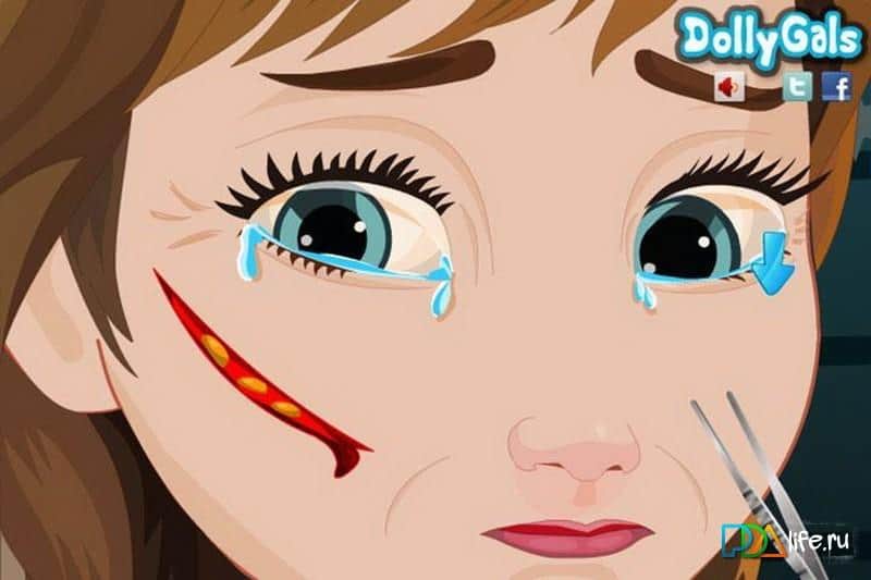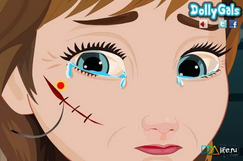After Injury Frozen Anna – игра которая перенесет вас в мультик «Ледяное сердце» и опять заставит пережить все интересные события, происходящие в нем. В этой игре Анна отправилась в замороженный лес искать свою сестру Эльзу, но вдруг оступилась и получила глубокую травму на шике. Помогите Анне получить первую медицинскую помощь и залечить ее рану. Следуйте всем указаниям этой игры, шаг за шагом и проводите лечение. Сначала почистите ранку от грязи, зашейте ее и наклейте пластырь. После того как ранка заживет, оденьте свою героиню в различные костюмчики и выбирая из широкого спектра украшений и нарядов подходящий ей.