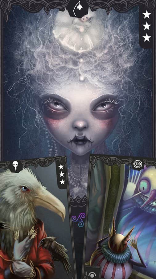 Afterland – карточная игра на андроид, выполненная в мрачном стиле, где главные герои взяты из произведений Льюиса Кэрролла. Эта игра обладает своим уникальным и неповторимым сюжетом, где вы отправитесь в страну Зазеркалья и познакомитесь с красочными героями карт. Соберите свою уникальную колоду карт и повышайте их способности. Каждая карта в этой игре это произведение искусства, они уникальны и не повторяются. Попробуйте выбраться из этого пугающего мира и прокладывайте себе дорогу к свету. Победите злую карточную королеву и помогите Алисе отыскать своего друга кролика и вернуться в свой мир.