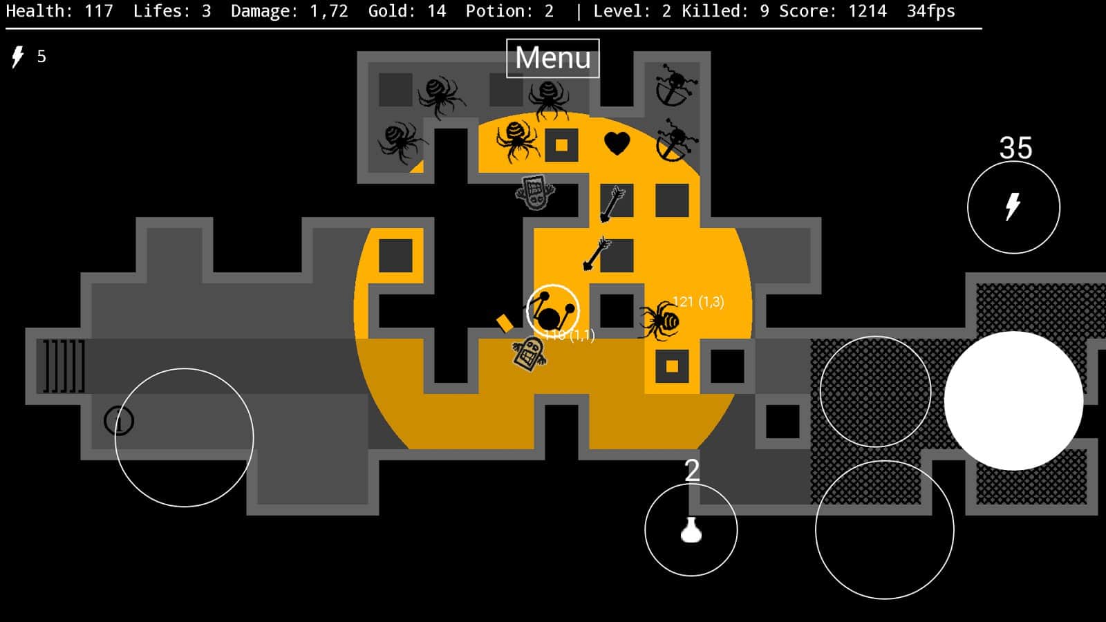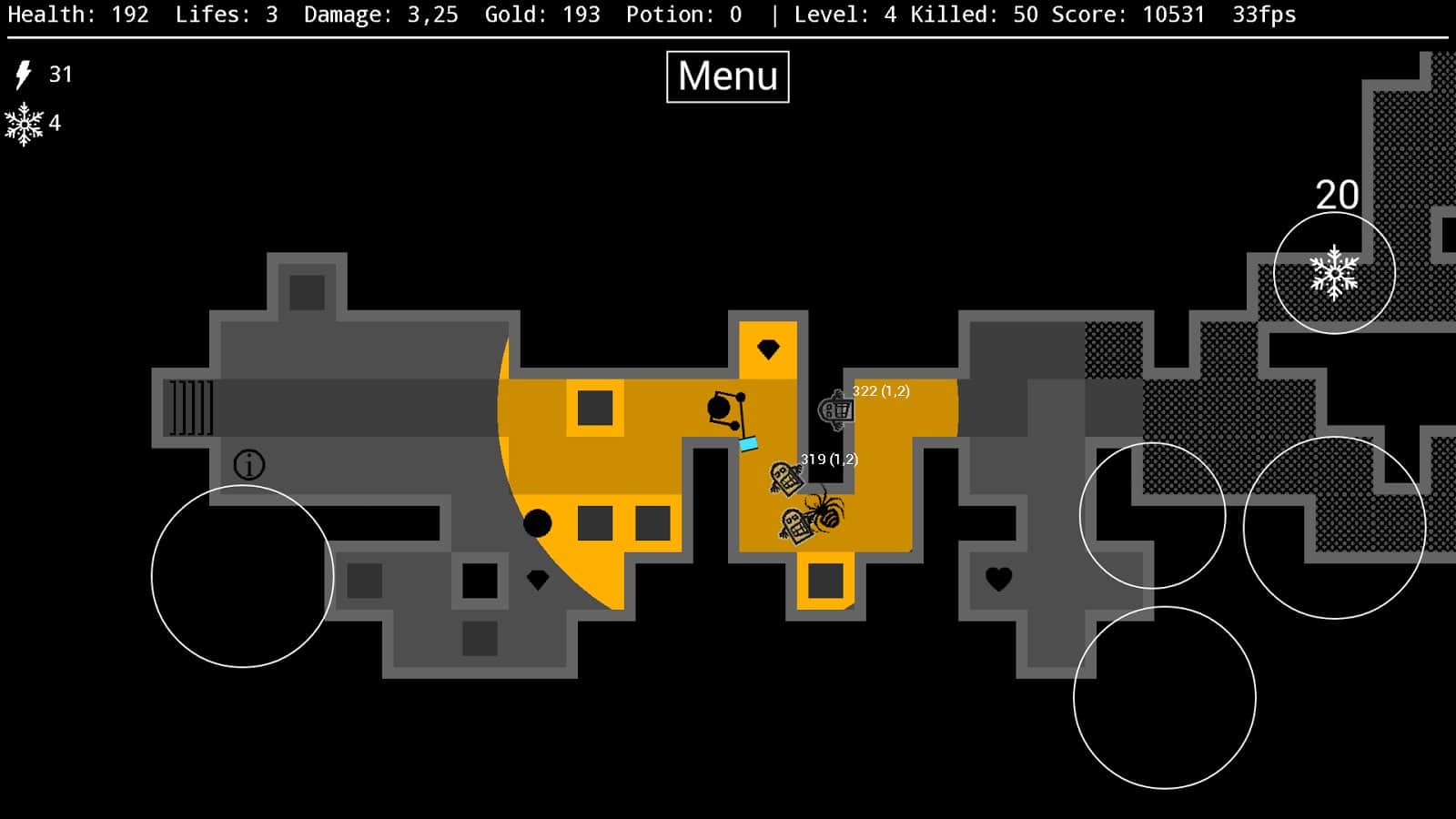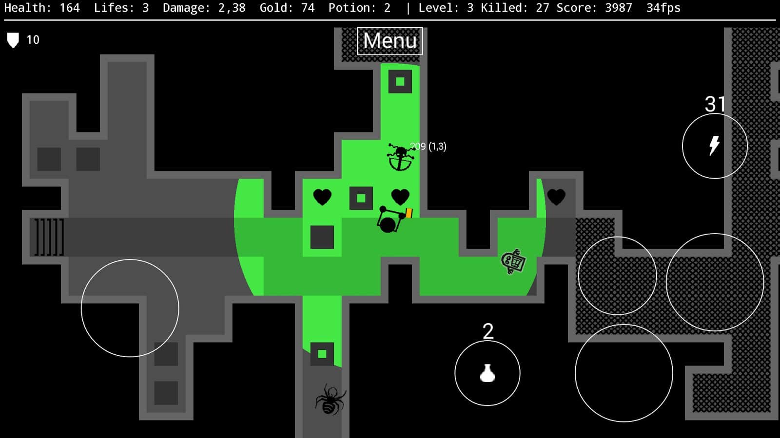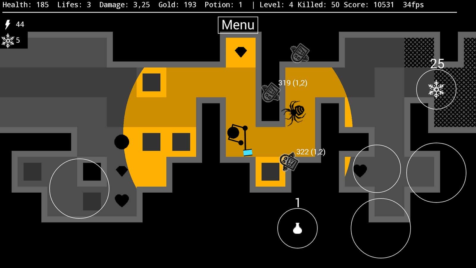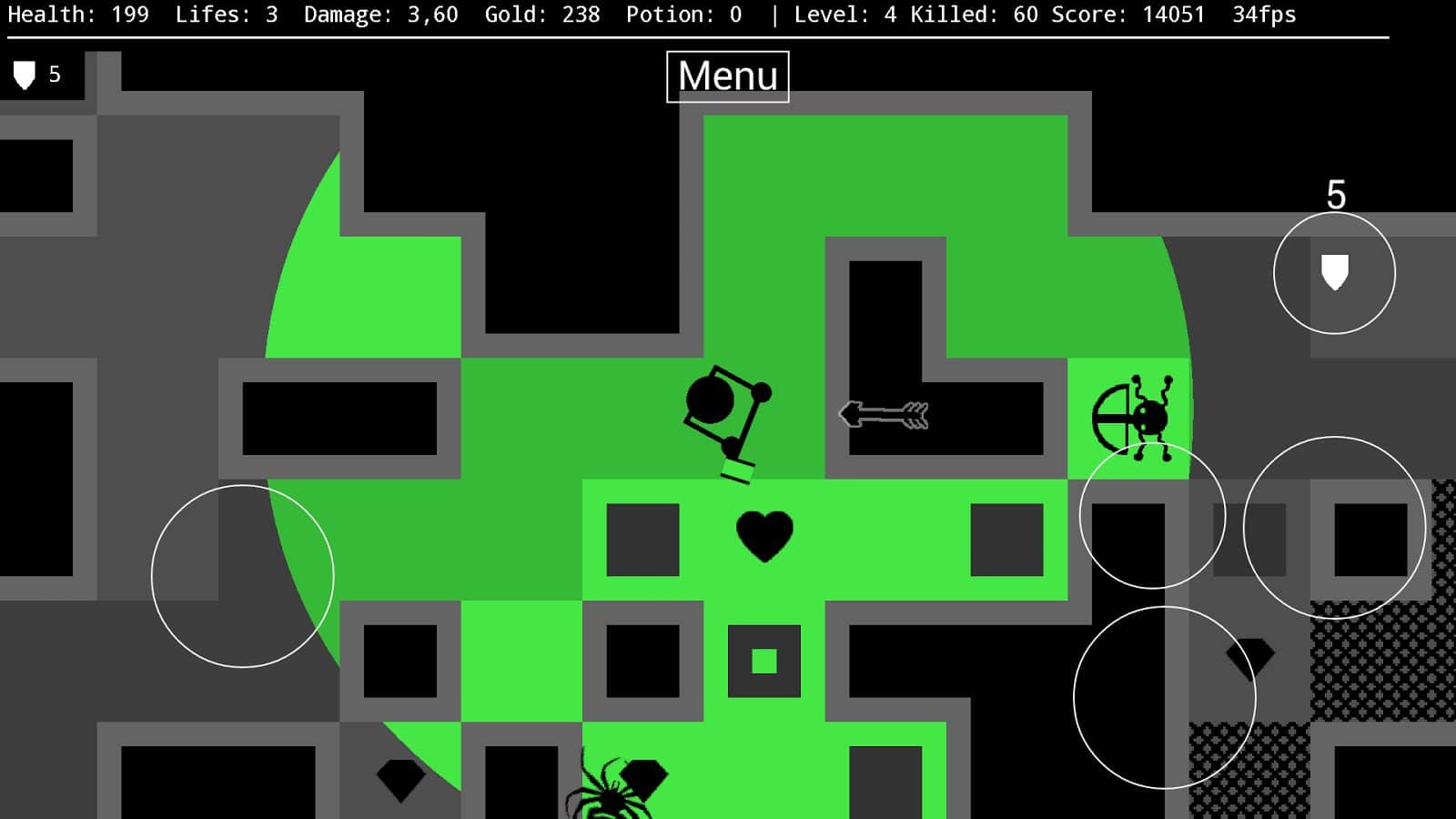 Against the Darkness – отправляйтесь в увлекательное путешествие по таинственному подземелью, наполненному ужасными врагами и огромными пауками. В этой игре вы будете помогать отважному воину пройти случайным образом генерируемые подземелья и сражаться там с силами тьмы и врагами. По мере продвижения по игре собирайте золото, которое поможет вам повысить свои шансы на выживание, а также приобрести новое оружие, экипировку и зелье со здоровьем. Продемонстрируйте все свои стратегические навыки, рассчитывая свою силу, бонусы и здоровье. Пройдите как можно больше уровней и решайте сложные задачи по уничтожению мощных монстров и боссов.