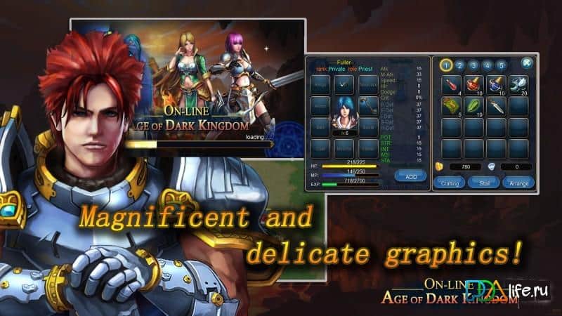 Age Of Dark Kingdom - классическая онлайн РПГ с фэнтезийным сюжетом. События игры разворачиваются в неком сказочном мире, во времена когда еще эльфы, орки и гоблины, гномы и люди жили в мире. Но по прошествии тысяч лет произошел конфликт который в последствии перерос в настоящую войну. И теперь только один герой способен вернуть мир и гармонию в сказочный мир. Данная игра в плане игрового процесса построена по всем канонам жанра, помимо динамичных схваток, долгих путешествий, проработанных диалогов, сотен заданий и квестов, обладает очень замысловатой системой развития персонажа и его снаряжения. Так что для успешного прохождения вам потребуется вникать буквально в каждую мелочь.