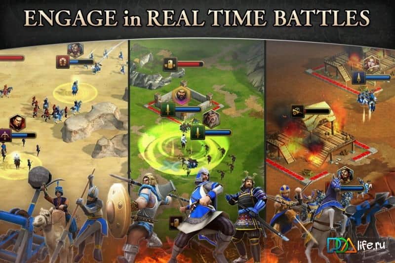 Age of Empires:WorldDomination – онлайн стратегия на андроид, которая перенесет вас во времена легендарных воинов и отважных рыцарей. В этой игре вы отправитесь в прошлое, где вам предстоит выбрать цивилизацию и повторить их прошлое, либо создать свою собственную историю в масштабных сражениях. Выбирайте на какой стороне вы будете сражаться и соберите свою огромную армию воинов включая таких известных личностей как: Жанна д'Арк, король Артур, Ода Нобунага, Цао Цао, Кнута Великого и других. Развивайте и защищайте свою империю от нападок врагов и добывайте ценные ресурсы, благодаря которым вы сможете усилить свои войска или пополнить их численность. Разрабатывайте свою тактику ведения боя и станьте самым опытным полководцев в этой игре. Исследуйте весь мир и покорите его, построив свою огромную цивилизацию.