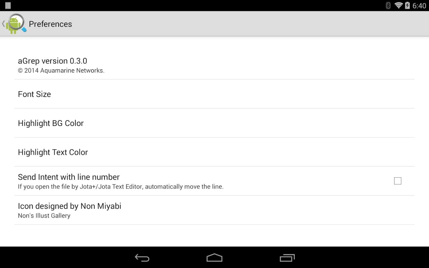 aGrep - программа на андроид позволяющая искать нужную информацию в текстовых файлах. Программа может искать данные как в памяти телефона так и на внешней карте памяти. Программе ищет информацию как с названии файла, так и в его содержимом, также имеет свой собственный просмотр информации. Также распознаётся автоматическая кодировка файла, так что вы ничего не упустите.