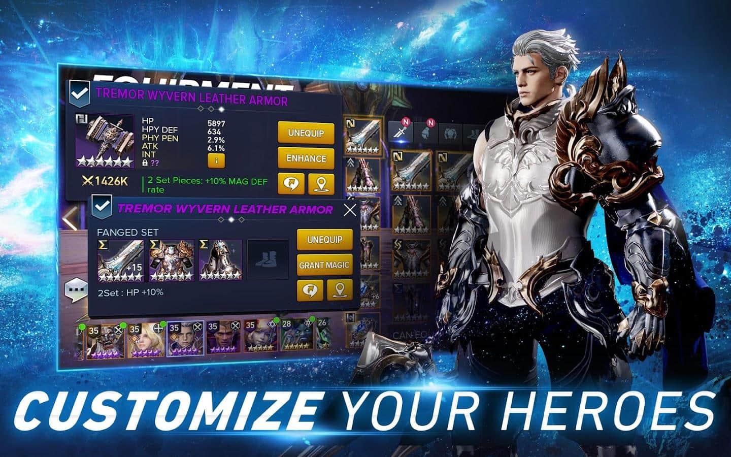 AION: Legions of War – RPG на андроид, является первой игрой, которая порадует вас консольной графикой и масштабными сражениями. Соберите свой непобедимый легион который будет состоять из многочисленных героев и отправляйтесь в путешествие по огромной вселенной, пытаясь разгадать ее тайны. Играйте в эту игру и наслаждайтесь отличной графикой, которая несвойственна мобильным играм и улучшайте своих героев. Соберите свой легион из бронированных воинов, чудовищных зверей, киборгов и других героев. Применяйте разрушительную тактику и оружие своих героев и доминируйте над своим врагом. Улучшайте своих героев, добавляя и мощную броню, оружие и аксессуары.
