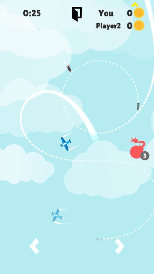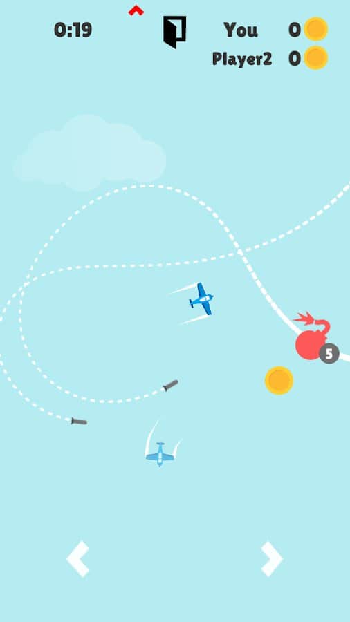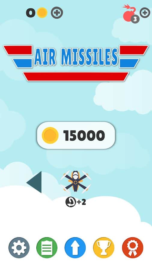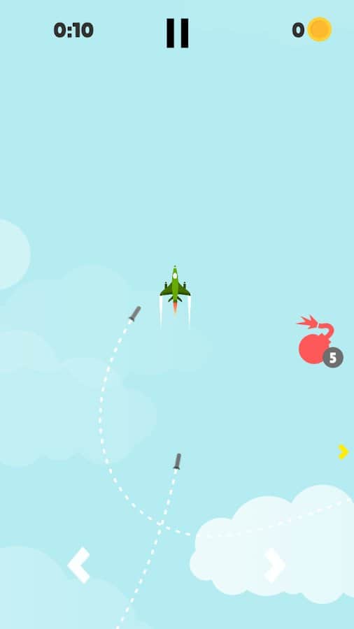 Air Missiles – захватывающая аркада на андроид, где вы будете управлять самолетиком. Станьте пилотом самолета и выполняйте различные маневры и мертвые кольца, перемещаясь по обширным локациям. Вашей главной задачей в этой игре будет собрать как можно больше монет и бонусов и при этом увернуться от преследующих ракет. Выполняйте ежедневные задания и соревнуйтесь с другими игроками за лучшие результаты. Открывайте для себя новые самолеты и применяйте бонусы, которые помогут вам уклонится от ракет.