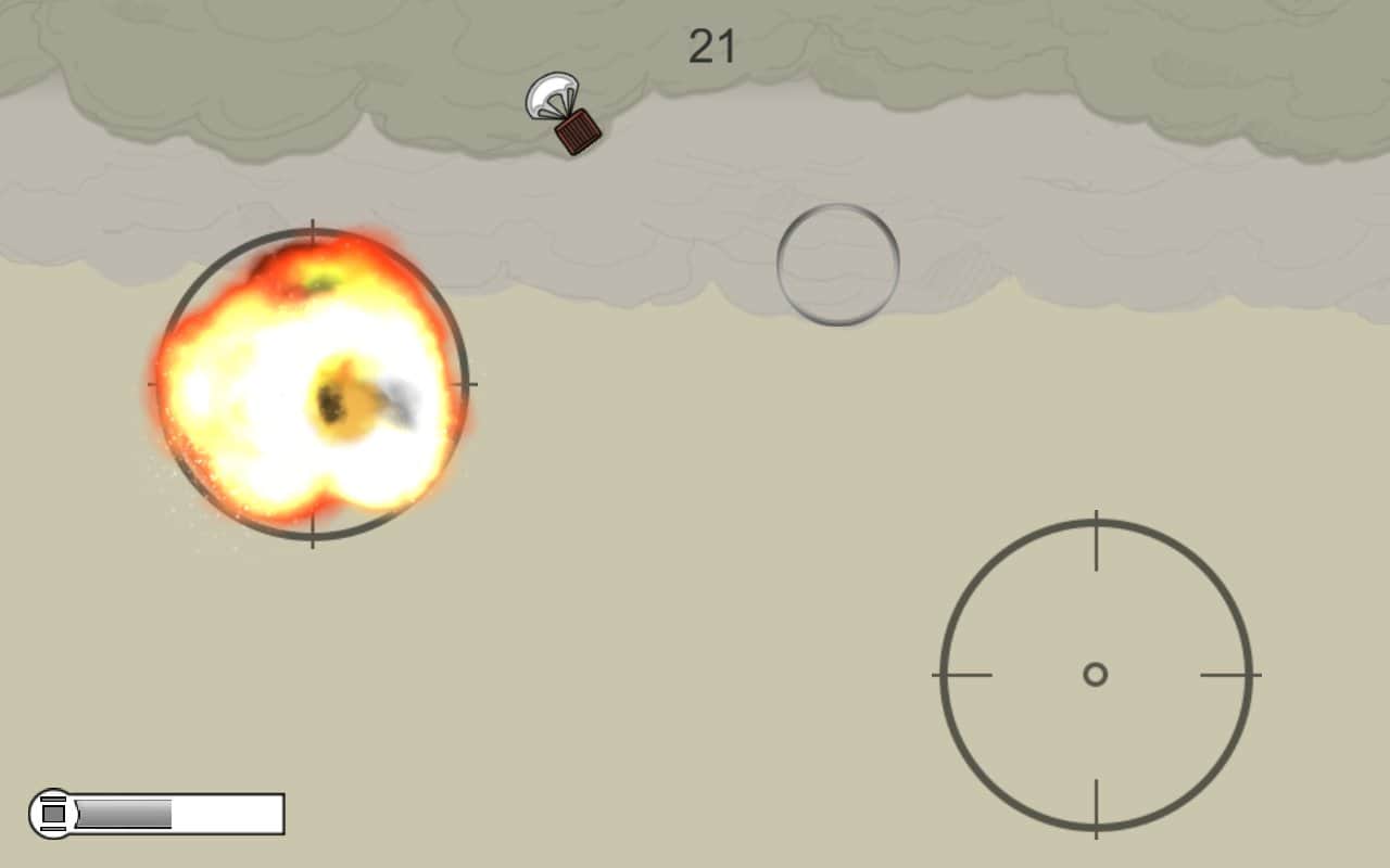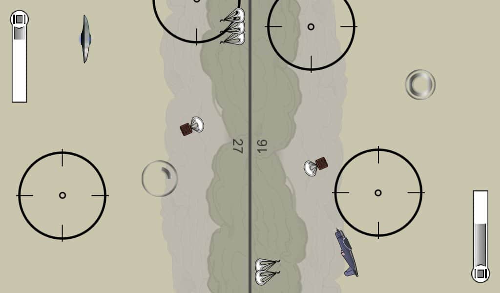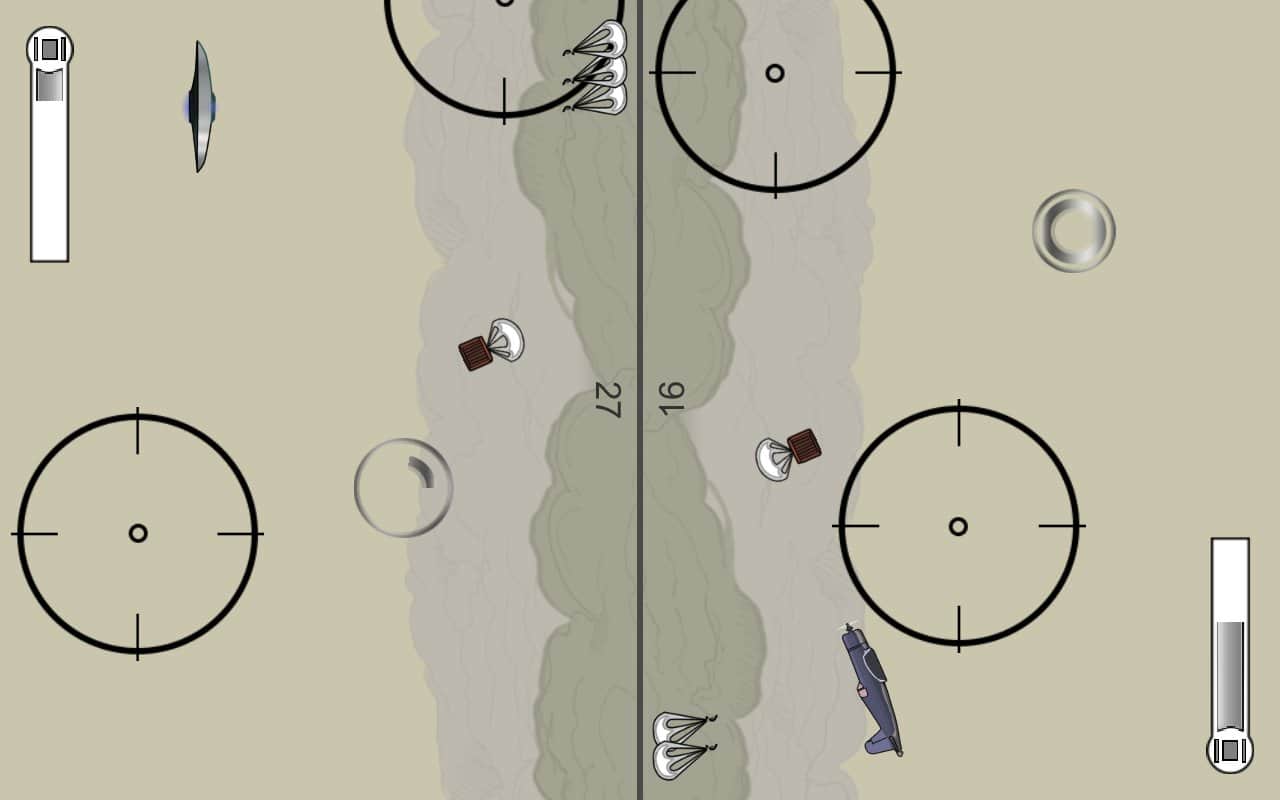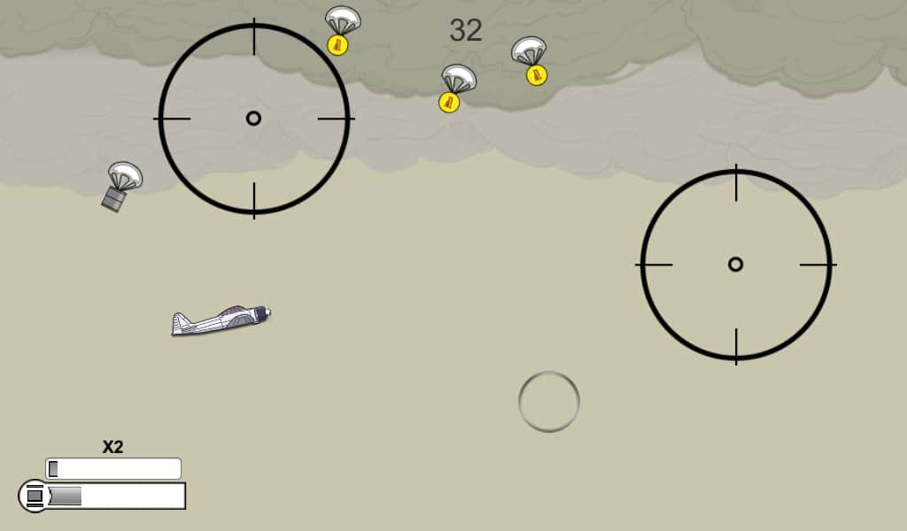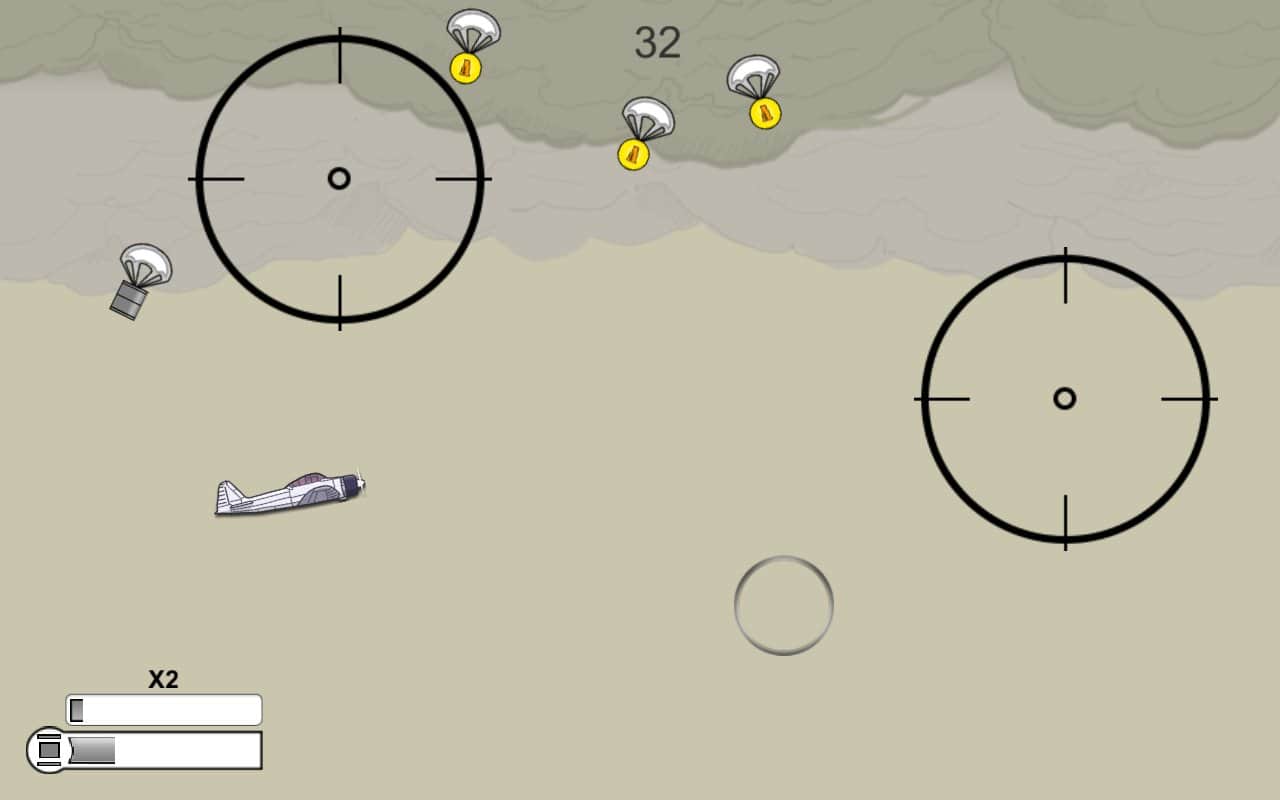 AirBAM – увлекательная и в тоже время очень сложная игра, в которой вам предстоит управлять самолетом. Начните свою карьеру отважного пилота, который управляет самолетом и пытается добраться до базы. В этой игре вы попадет в суровые военные времена, где ваш самолет в любой момент могут подбить враги. Летайте и совершайте различные маневры, обходя прицел и собирая монетки. Если ваш самолет все же взорвали, то приобретайте новый, которому уготовлена только одна учесть быть подорванным. Совершенствуйте свои навыки и обхитрите снайперов, чтобы пролететь как можно дальше. Играйте с друзьями на одном усройстве бросая им вызов.