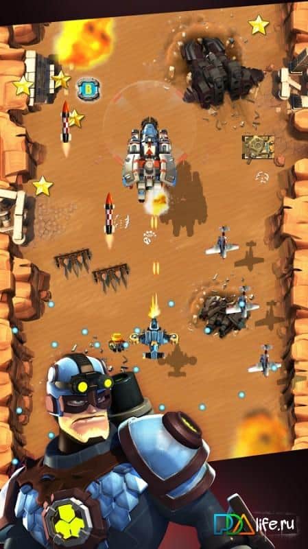 Aircraft Combat 2015 - авиационная экшен аркада выполненная в лучших традициях жанра. Разработчики Aircraft Combat 2015 для Андроид черпали идеи в самых известных играх хитах таких как AirStrik. В итоге получился аркадный экшен с динамичным геймплеем и хорошей графикой. Основной акцент в игре сделан именно на геймплей ориентированный на приятное времяпрепровождение, а простое управление и красочная графика с хорошей анимацией только дополняет картину. Как и в большинстве игр жанра Aircraft Combat 2015 начисто лишена сюжета, персонажей и каких бы то не было систем развития. Все что вам предстоит делать это управлять космическим кораблем и расстреливать орды врагов как воздушных так и наземных, отправляя в цели тонны боеприпасов.