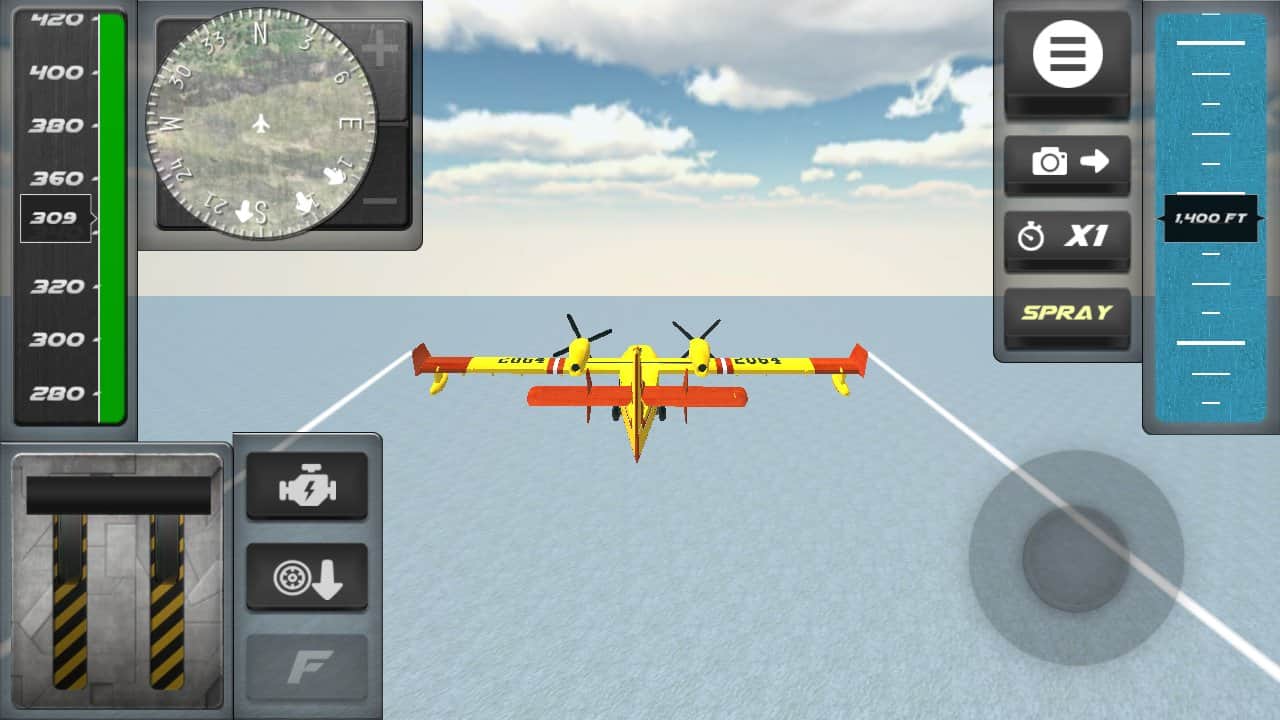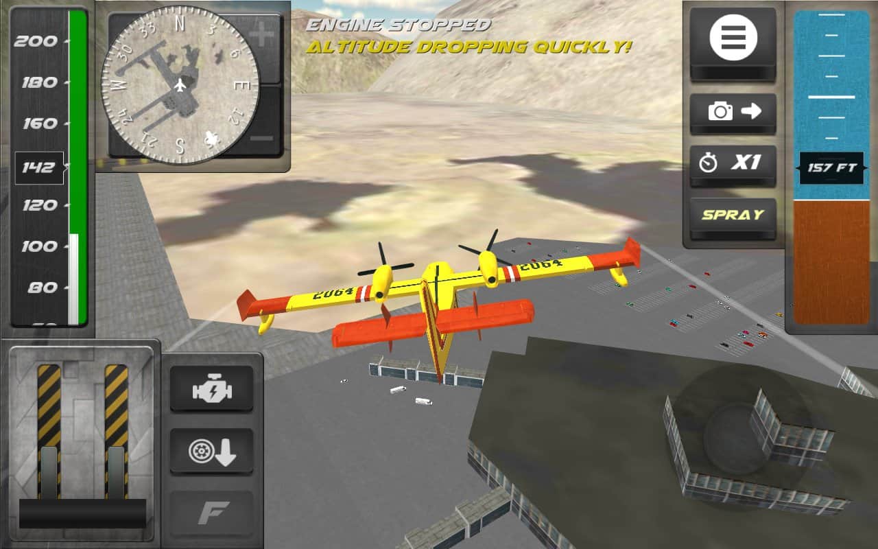 Airplane Firefighter Simulator – захватывающая игра на андроид, где вы будете управлять самолетом и тушить пожары. В этой игре вы станете летчиком асом, которому по силам поднять в небо самолет и летать над бескрайними просторами ища очаги возгорания. Тушите пожары происходящие в самых отдаленных местах и выполняйте поставленные миссии. Покажите на деле все свои навыки управления самолетом и мастерски снижайтесь над морской гладью, забирая на борт новые порции воды. Постарайтесь тушить пожар как можно быстрее, чтобы он не распространялся и не навредил местным жителям. Постоянно наблюдайте за показаниями приборов и не столкнитесь с многочисленными препятствиями и скалами.