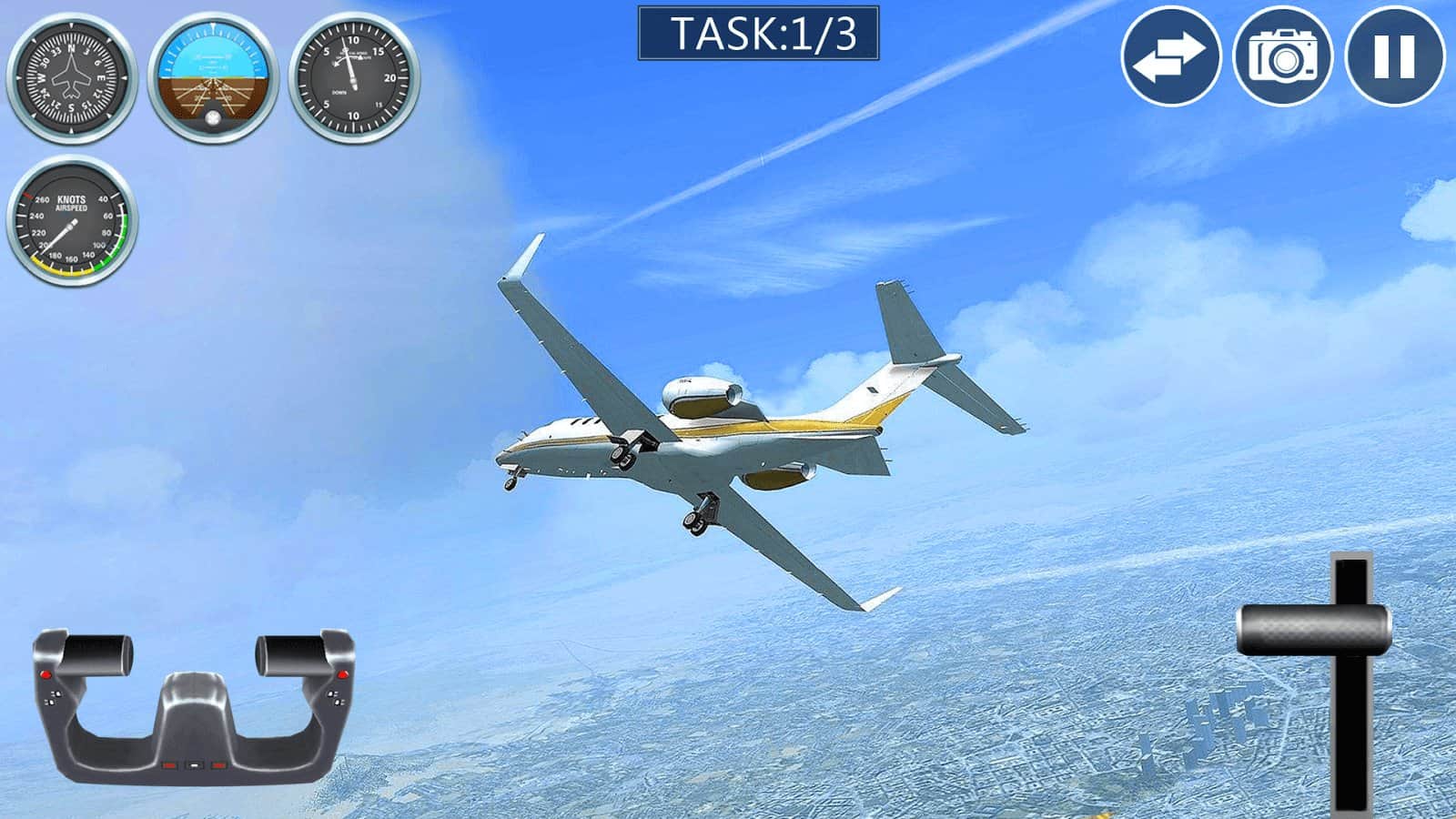 Airplane: Real Flight Simulator – отличный симулятор на андроид, где вы будете управлять самолетом. Станьте лучшим пилотом и выполняйте разнообразные маневры и пролетайте через контрольные точки. В этой игре вам на выбор будет представлено два вида самолета: гражданское воздушное судно и военный самолет. Совершайте взлеты и посадки и ведите самолет в нужном направлении, избегая высотных зданий и гор. Наслаждайтесь реалистичной физикой полета и отличной графикой. В игре вы также найдете 4 типа переключения угла полета самолета, чтобы получить реалистичное моделирование полета.