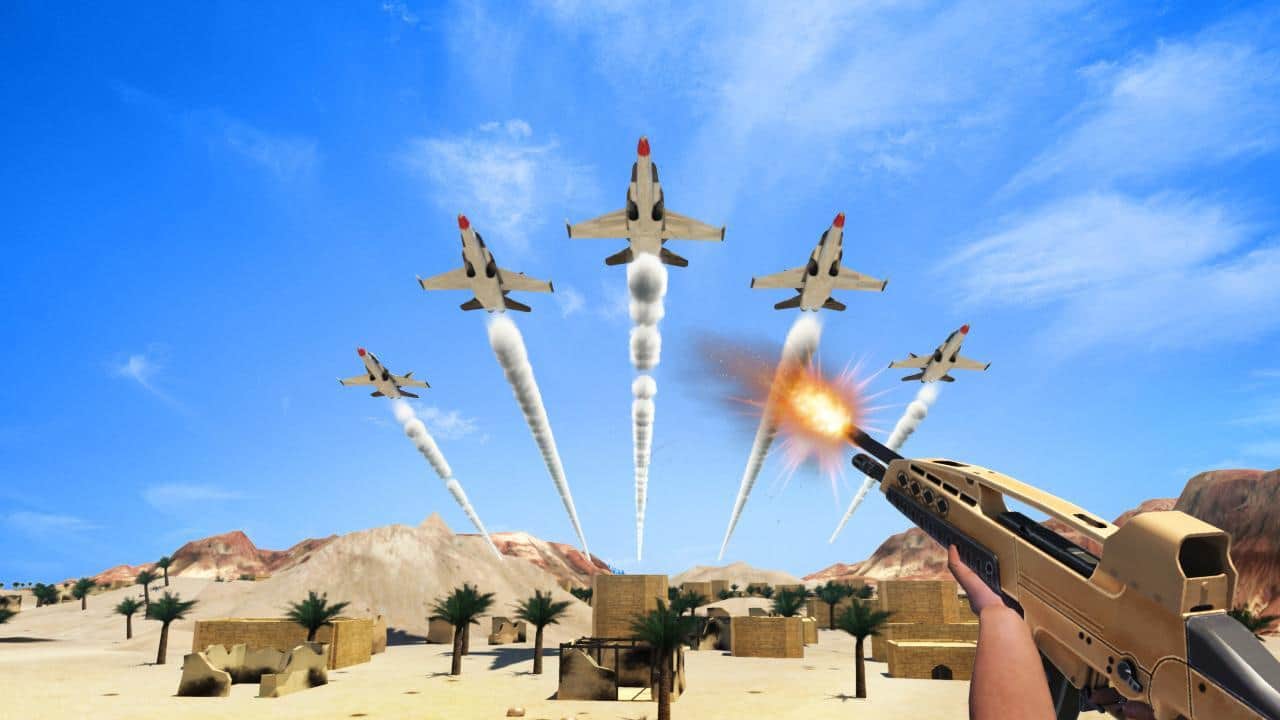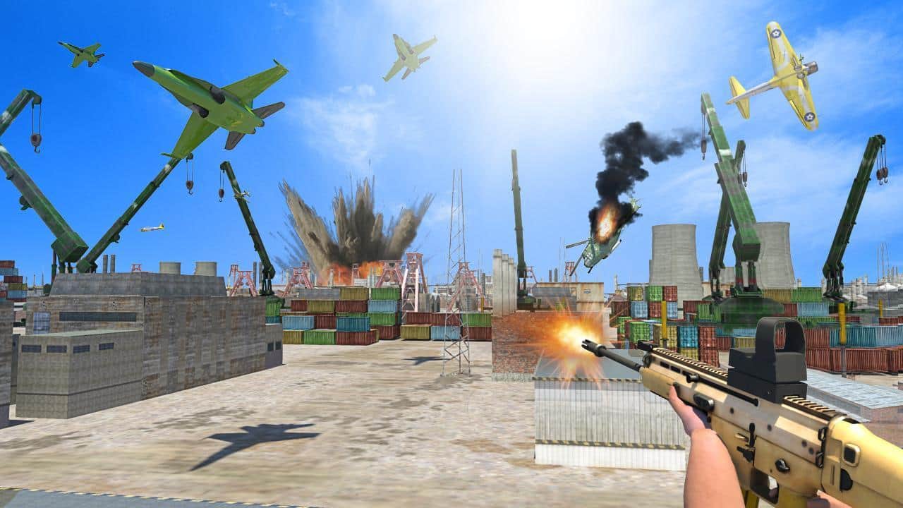 Airplane Shooter 3D – в этой игре вы возьмете в свои руки штурмовую винтовку и будете уничтожать вражеские самолеты. В игре вашей главной задачей будет не дать террористом осуществить свои коварные планы, уничтожая всю их воздушную технику. Выступайте в роли опытного стрелка и следите за радаром, которые будут показывать приближающиеся цели. Вам предстоит в этой игре проверить в действии разнообразные винтовки, пулеметы и многочисленные ракетные установки. Не позволяйте вражеским самолетам, ракетным истребителя и вертолетам скрыться от ваших глаз и выполнить свои миссии. Перемещайтесь по различным локациям и ведите непрерывный огонь по вражеским целям.