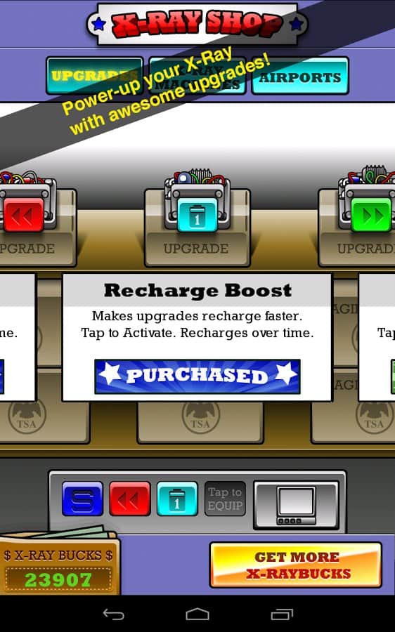 Airport Scanner - увлекательная аркада для андроид, своего рода симулятор сканера в аэропорту. Вы выступаете на стороне охраны аэропорта, и проверяете багаж пассажиров. Там имеются запрещенные к перевозке вещи и предметы, которые вы и должны найти. И не просто найти, а конфисковать, а владельца вещей выдворить с территории вообще! Штрафуйте и будьте внимательны - люди изобретательны! Модернизируйте свою поисковую аппаратуру и пройдите все предложенные аэропорты "на отлично"!