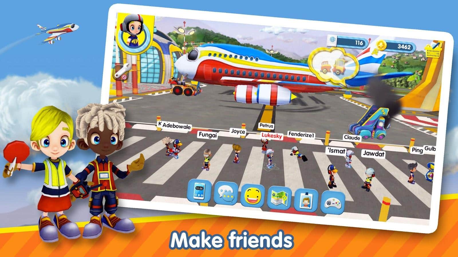 Airside Andy – массовое многопользовательское онлайн сообщество с виртуальным миром предназначено как для планшета там и для мобильного телефона. Исследуйте аэропорт, встречайтесь и общайтесь с друзьями и играйте в различные мини игры. Помогите выполнить загрузку и выгрузку багажа из самолёта, чем лучше вы это делаете, тем больше сможете заработать виртуальных монет. Используйте ваши монеты, чтобы получить новую форму и одежду с определёнными особенностями, для этого в аэропорте есть специальный магазин. Играйте в игры, чтобы заработать виртуальные монеты, которые вам обязательно пригодятся.