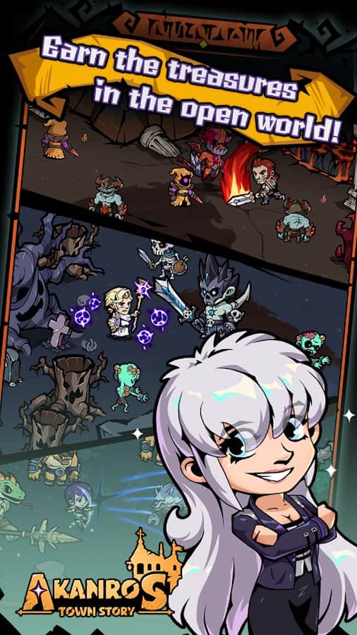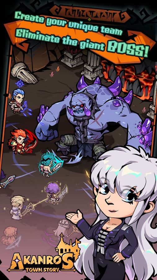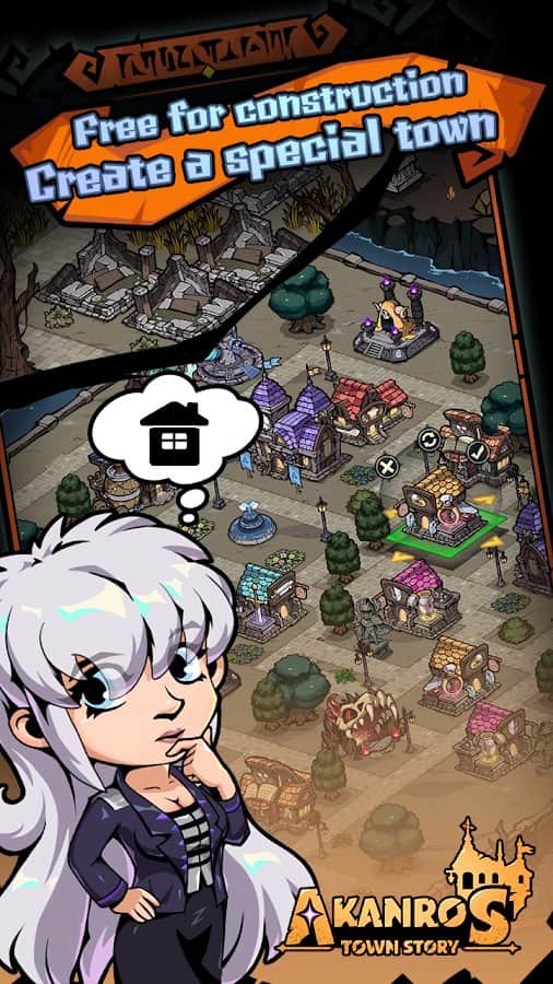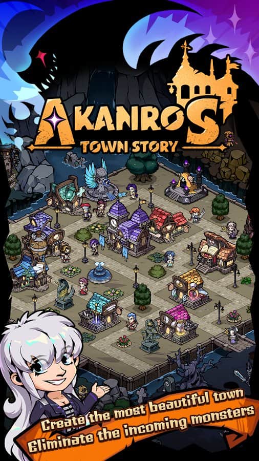 Akanros Town Story - Восстановите разрушенный город после Темного Лорда, накинувшего тьму на весь мир. Сражайтесь за свою гильдию, собрав команду из участников с различными способностями, чтобы отомстить и маршировать на «Темный парадный двор»! Управляйте строительством города, продажей и обучением Героев, командованием 3 разных классов и их расположением по вашей территории! Бесконечно перевоплощаясь в Святилище Воскресения, тренируйтесь на Тренировочной площадке, модифицируйте снаряжение в Кузнице улучшений и давайте героям задания на охоту на монстров в Баунти Хижине.