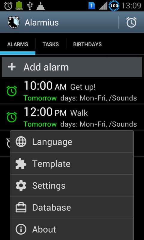 Alarmius – аналог стандартного будильника от разработчика Sikambr. Данный будильник содержит постепенное усиление звука и возможность указания места хранения базы данных. Скачав и установив данный будильник у вас появится возможность просыпаться под "Гимн СССР".