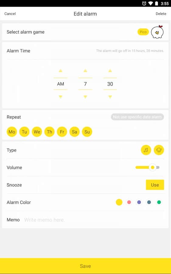 AlarmMon (alarm clock) – безумный будильник для вашего андроид устройства от разработчиков Malang Studio Co, Ltd. С данным приложением вы забудете про сон в считанные секунды. Используйте на каждый рабочий день новый персонаж жителей будильника, которых не менее 5 (Хенни Пенни, Черный Кот, Bready, Floppy рыбка, Баранчик от TinyFarm). Каждый из них имеет свою историю, характер и особенности. Приятных подъемов с AlarmMon.