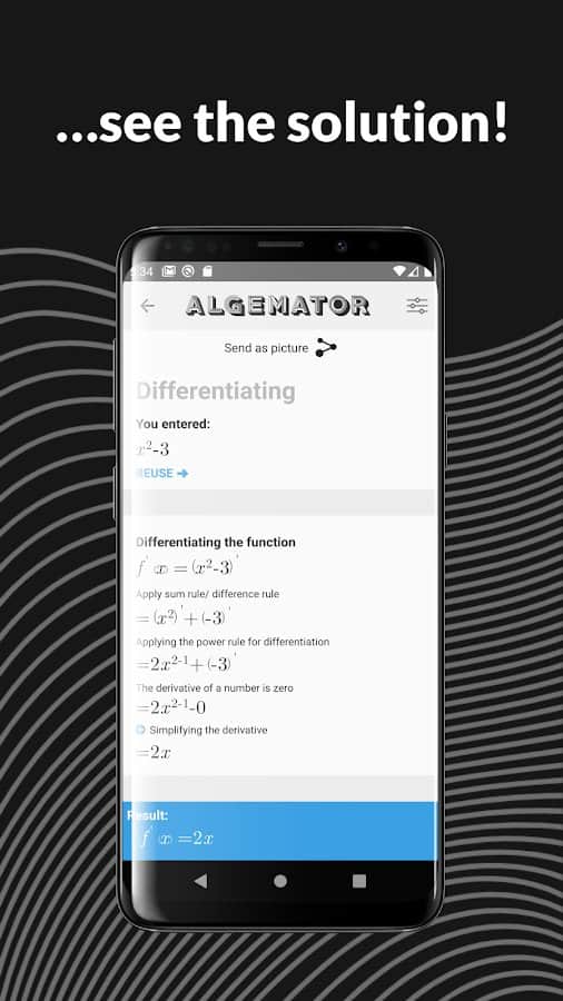 Algemator - Значительно улучшите свои способности в математике и научитесь новому благодаря удобному приложению, в составе какого входит множество полезных функций: печать математических уравнений, решение задач по фото, быстрый набор рисованием, подробно расписанные шаги к результатам, подробные фигуры для визуального восприятия и постоянные тренировки в любых категориях. Алгематор дает возможность облегчить себе жизнь и отыскать решения на непонятные условия. Приложение поддерживает любой уровень знань, с основ до самых высот.