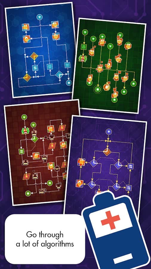 Algorithm. Journey inside the program – занимательная головоломка на андроид, где вы будете помогать шаману найти выход. В этой игре одной лунной ночью шаман вселился в смартфон туриста и теперь его задачей будет путешествовать через алгоритмы и выполнять различные действия чтобы добраться до выхода. Уровни в этой игре выполнены в виде блок-схемы, известных всем со школьных уроков информатики. Блок-схемы состоят из разных узлов таких как: «Начало», «Конец», «Данные», «Условие», «Ручной ввод», «Параллельные процессы» и других. Перемещайтесь по узлам и тщательно продумывайте каждый свой шаг, который будет влиять на дальнейшее движение шамана. Главной задачей будет пройти все узлы и прийти к узлу «Конец» - выхода из системы.