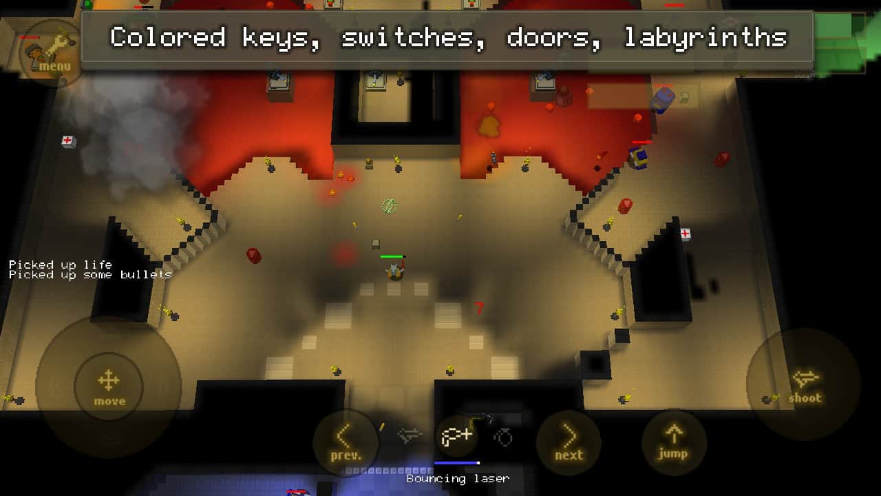 Действия игры будут проходить на более чем 41 карте со множеством тайников и ловушек, при создании которых разработчики использовали довольно необычное решение, скомбинировав популярный ретро-стиль и 3D модели. Создатели Alien Blitz не обошли стороной и социальную сторону добавив мировые онлайн таблицы лидеров в которых вы сможете сравнить свои достижения, стоит отметить и поддержку игровых контроллеров, что конечно не лишнее ведь игра очень динамичная.