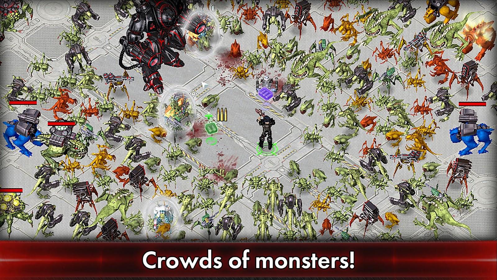 Alien Shooter – знаменитый экшен шутер от компании Sigma добрался до Андроид платформы. Вам предстоит сражение на заброшенном военном комплексе против толп инопланетян. Ваша задача – зачистить базу. Выберете себе подходящее оружие и выступайте! Вас ждут 10 захватывающих уровня с самыми разнообразными монстрами. На этих уровнях собирайте деньги и покупайте новое оружие, а так же патроны.