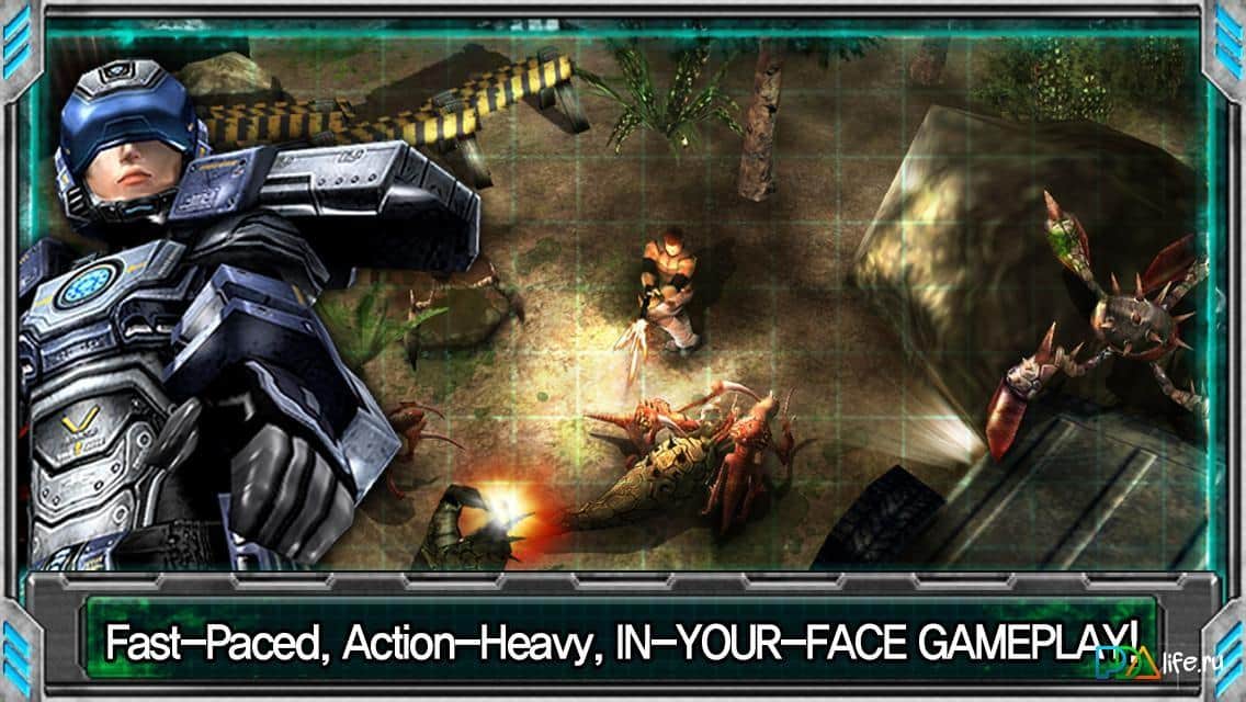 Alien Shooter EX - космический шутер на андроид, начинается с нападения инопланетных захватчиков. Главный герой, ушедший в отставку чтобы залечить свои раны после встречи с инопланетянами, снова возвращается в бой, когда узнает о их нападении. Исследуйте огромный мир, убивайте врагов и собирайте данные о них, чтобы как можно быстрее нанести им смертоносный удар.
