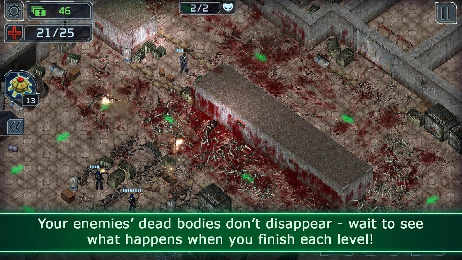 Хороший TD с мясом и музыкальным сопровождением AS. Карты интересные, вместо башен тут 7 видов войск. Каждый вид войск можно снаряжать разным оружием, которое выпадает из ящиков, а так же их можно тренировать. У каждого вида войск своя ветка прокачки, но особо интересного там ничего нет(Обычно можно им улучшить скорость стрельбы, урон по здоровью или по броне, радиус атаки и тд.). Так же во время тренировок войска нельзя использовать, что конечно же минус. Так же нельзя подробно посмотреть, какие противники будут во время волны, так что войска придется брать наугад.