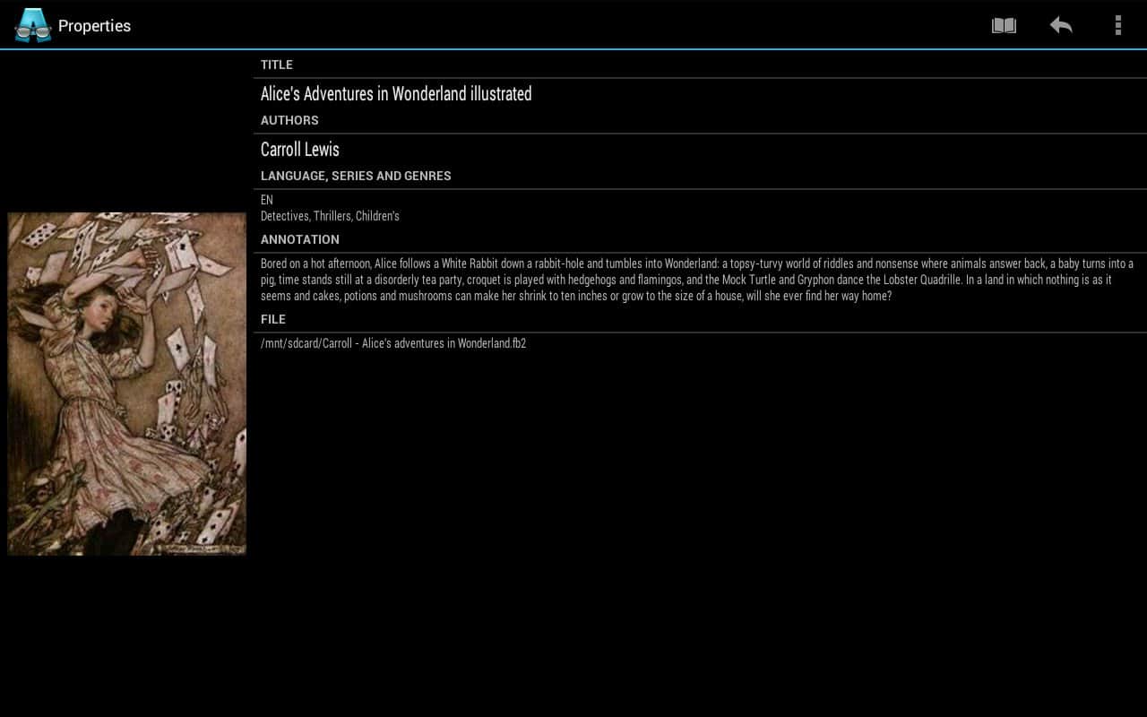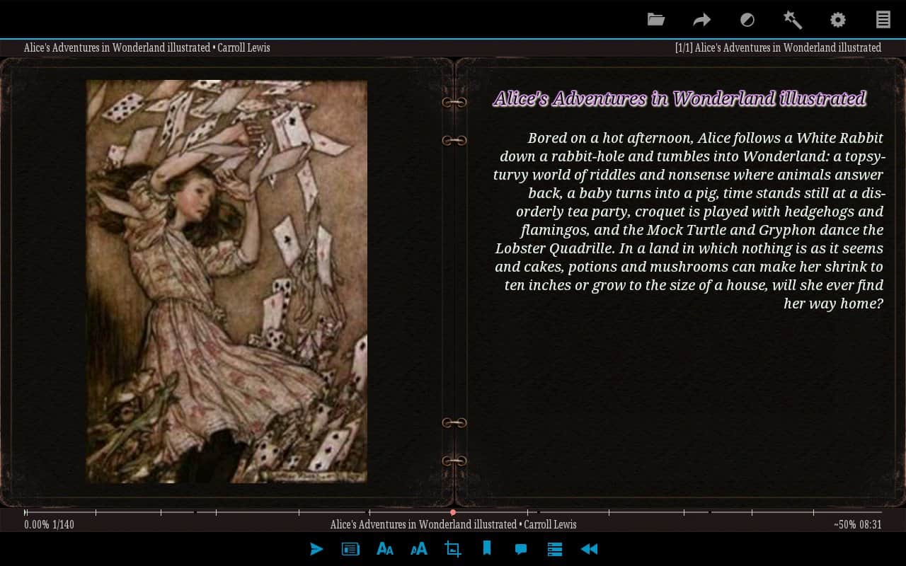 Оформление приложения таково, что вы сможете не просто читать книги, но и по-настоящему наслаждаться этим процессом, ведь читалка правильно расставляет переносы, отображает буквицы, имеет красивые анимации перелистывания и несколько встроенных тем оформления.