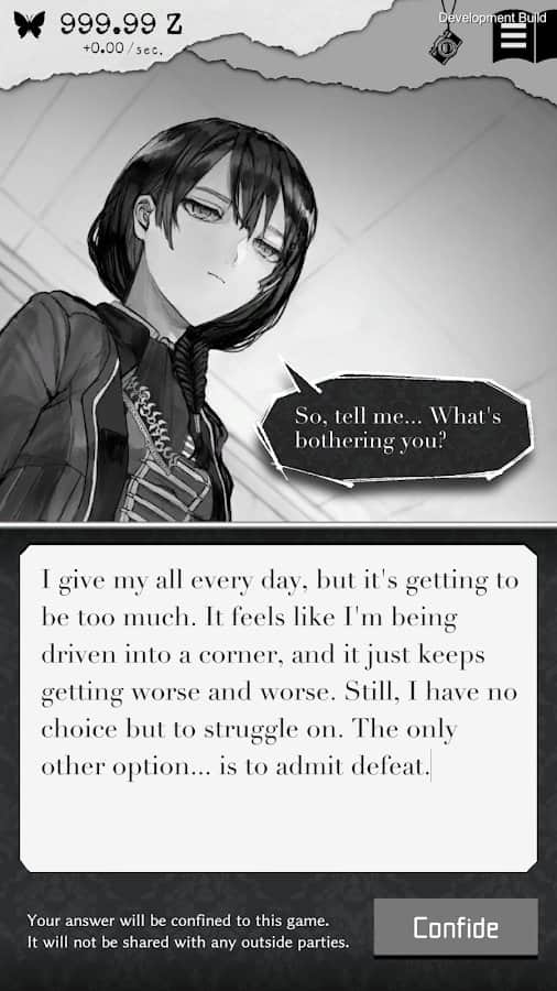 ALTER EGO - Посмотрите на собственного персонажа с другой стороны. Возьмите весь процесс полностью в свои руки, доверившись интуиции или раздумывая над тем, какие последствия могут произойти исходя из того или иного совершенного действия. Постепенно двигайтесь по каждому этапу сюжета, проходите интересные психологические тесты, читайте все доступные перед вами раздумывания о собственной жизни и познании себя. Чем дольше вы будете находиться внутри поиска ответов — тем быстрее они всплывут в вашей голове.