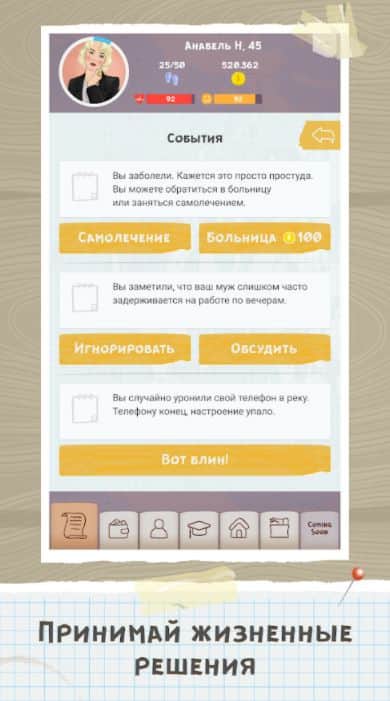 Симулятор AltLife: Hard Life Simulator позволит ваш смоделировать и прожить сразу несколько жизней, выбрав свой персональный путь и достигнув определенных целей. Приложение поможет вам ответить на самые злободневные вопросы о том, что делать, если работа не нравится, можно ли родить ребенка, если ты еще не готов по возрасту, нужно работать по найму или стоит открыть бизнес, как избегать разногласий в семье и т.д. Экспериментируйте и создавайте разные ситуации, исходов у которых может быть несколько. Ваша интуиция поможет вам проработать разные сценарии из жизни и применить те, которые вам нравятся, в реальной жизни.
