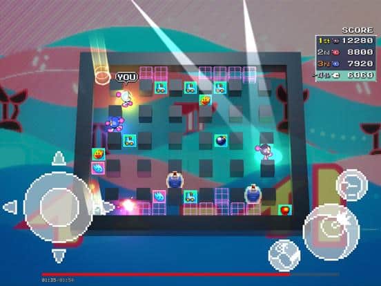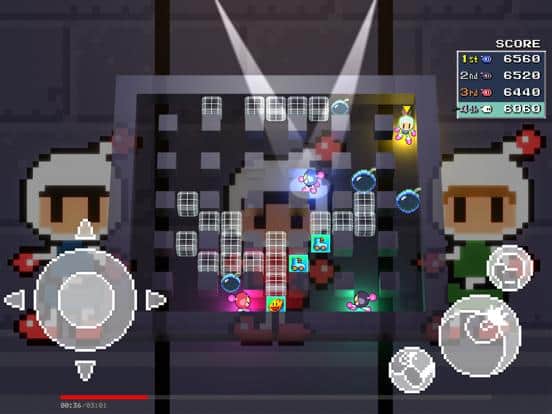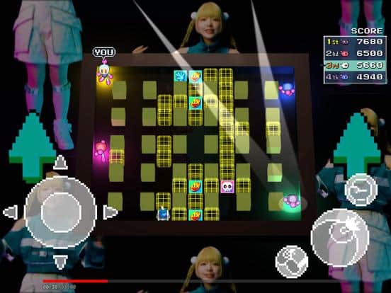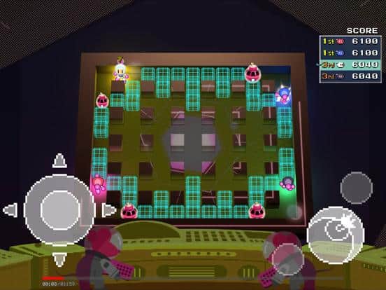 Amazing Bomberman - окунитесь в необычные бои, где прохождение каждого уровня напрямую зависит от музыкального воспроизведения на фоне! Сначала вам предстоит научиться играть, затем вы можете оттачивать собственные способности в тренировочном режиме, и только потом отправиться на соревнования с друзьями или игроками в многопользовательском режиме. Основная задача баттлов состоит в том, чтобы перемещаться за определенное время на оставшиеся территории земли на поле, то есть именно те, которые подсвечены. Если вы не успеете туда добраться — вы автоматически проиграете.