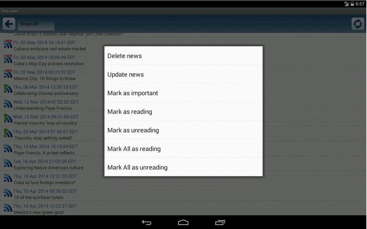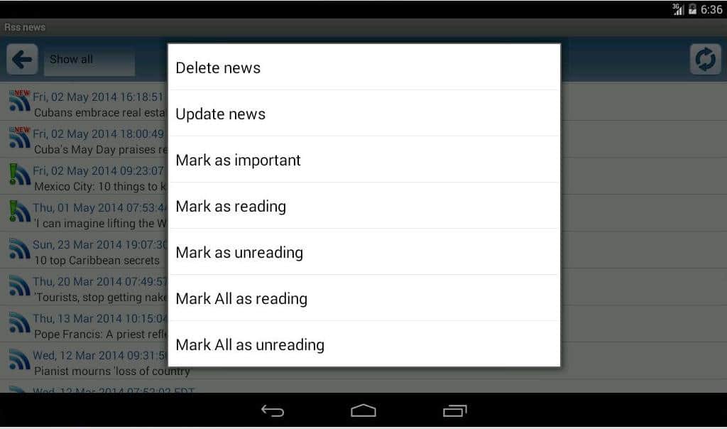 Amega RSS Reader - удобное приложение для чтения новостных RSS лент с вашего мобильного девайса. Приложения уже имеет набор из нескольких популярных новостных лент на различных языках мира, включая русский язык, поэтому сразу после установки приложения вы уже сможете читать новости. При желании вы всегда сможете добавить свои ленты в приложение. К каждой новости можно устанавливать свой статус, например прочитав что-либо можно поставить статус «прочитано»