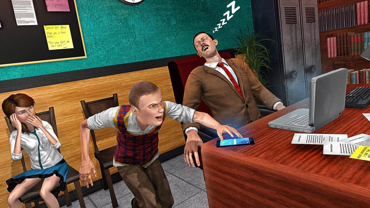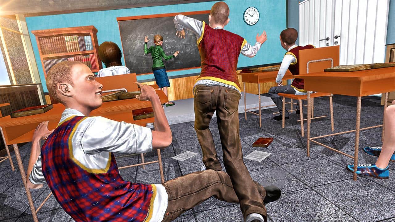 American High School Gangster – захватывающая игра на андроид, где вы будете выступать в роли хулигана средней школы. Эта игра перенесет вас в школу где вы будете управлять главным героем который совершенно не хочет учиться, а хочет развлекаться и веселиться помогите ему в этом. Выполняйте различные хулиганские миссии и задания, например такие как: отобрать деньги у учеников, украсть одежду из раздевалки, а также забрать новенький телефон со стола учителя. Приготовьтесь к том что вы наживете много недругов и врагов, которые будут подстерегать вас возле школы и давать вам отпор. Участвуйте в драках и убегайте от охранников.