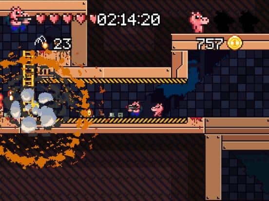 Ammo Pigs: Armed and Delicious - В 2049 году внезапно случилась бойня между контроллерами А.И. и местными жителями планеты. Одни лишь свиньи остались смело сражаться против целой армии, намеренной превратить их в колбасу. Пройдите через все испытания, разработанные в мясной фабрике, чтобы не быть пойманным в ловушке и не ждать собственной очереди на переработку в еду. Собирайте по пути золотые монеты, они пригодятся вам для покупки специальных возможностей: двойной удар, ракеты, граната. Возьмите под свой контроль ситуацию и уничтожьте противников!