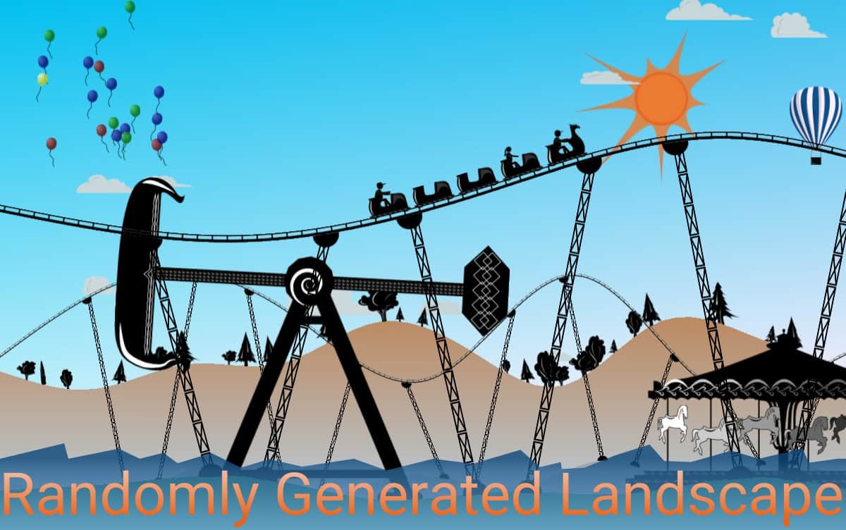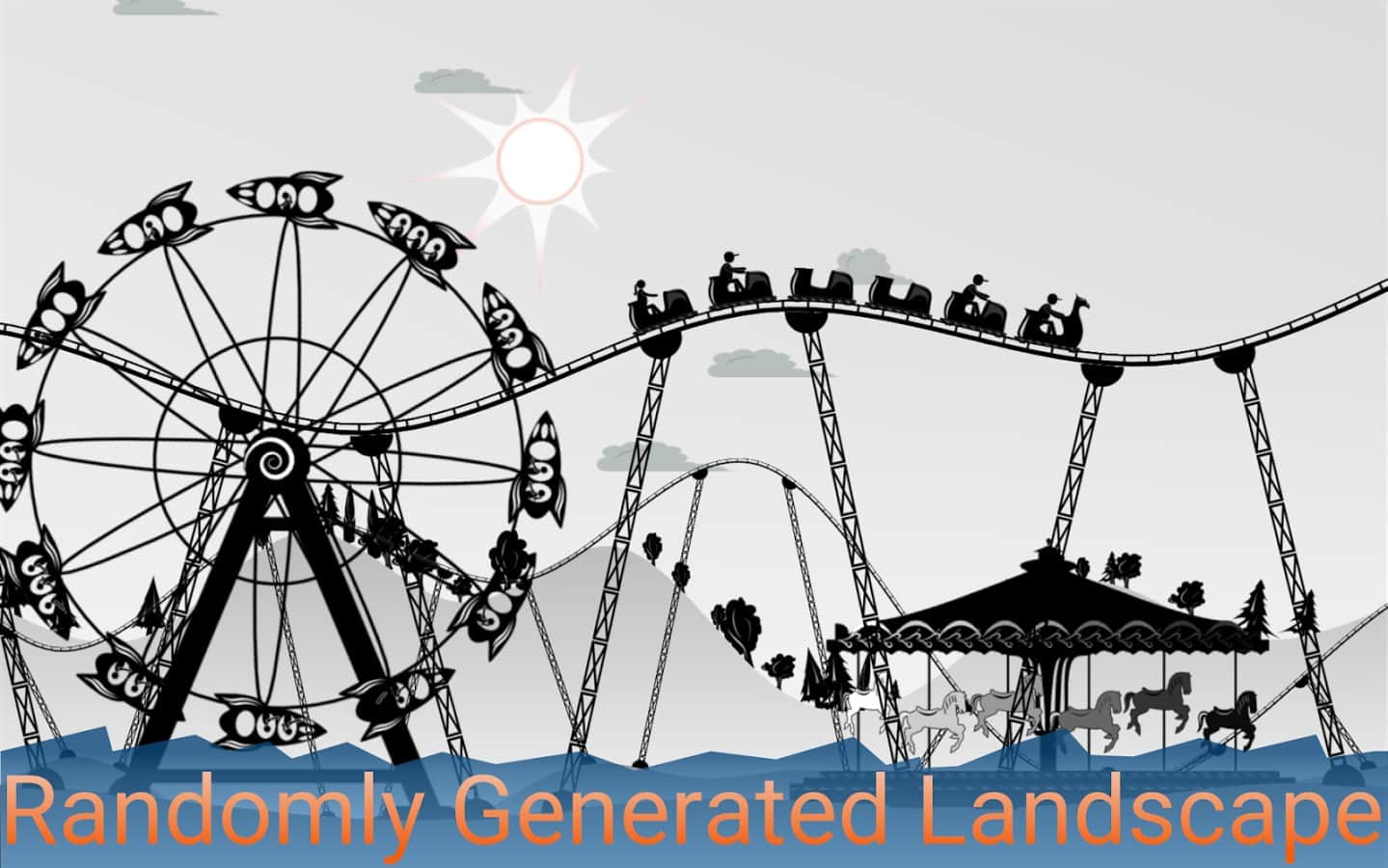 Парк аттракционов генерируется случайным образом (каждый раз новый пейзаж)