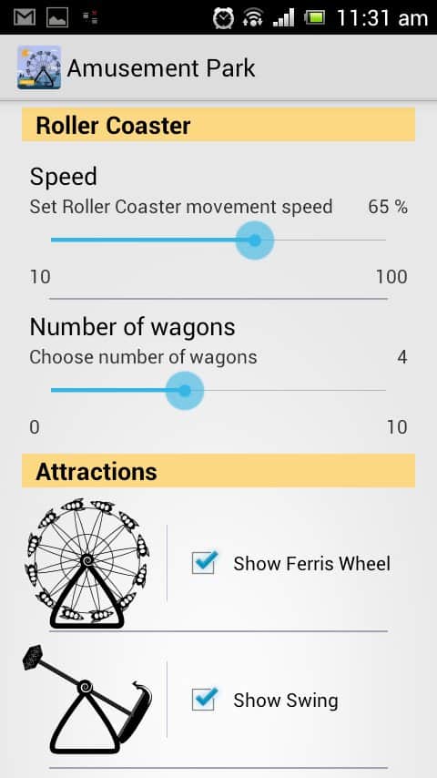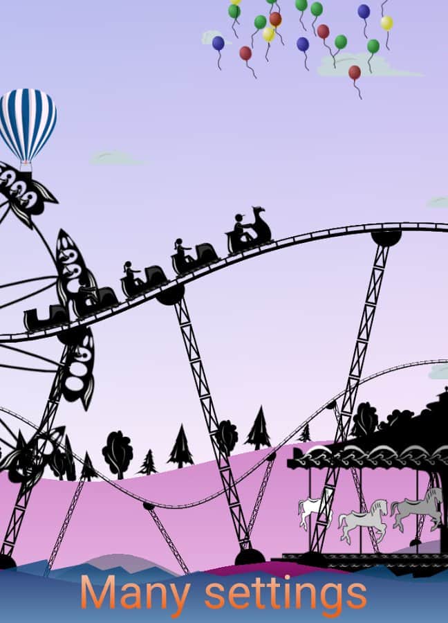 Amusement Park Live Wallpaper - анимированные живые обои, которые подарят вам чувство праздника, веселья и радости, а самое главное, чувство острых ощущений от американских горок, качелей и других аттракционов. Приложение мало весит, забирает намного памяти телефона и работает без тормозов и задержек.