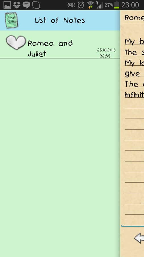 AndNotes - приложение с помощью которого вы можете оставлять заметки и напоминания теперь и на андроид. Теперь стало очень легко оставлять заметки о напоминании важного дела либо события. Также заметкам можно давать разные категории значимости, они напомнят вам о себе ровно в срок. Теперь вы точно не пропустите важное для вас событие.