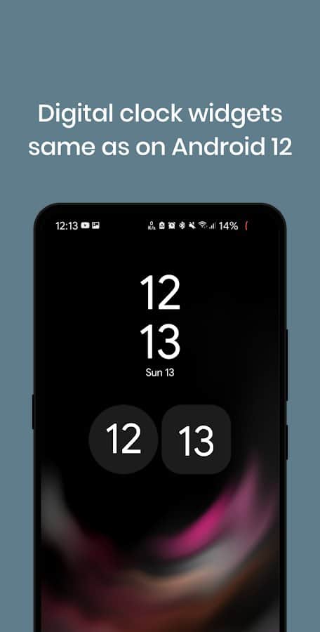 Android 12 Clock Widgets - yедавно вышедшая версия Андроид 12 уже покорила пользователей своим обновленным интерфейсом и улучшенным функционалом. Приложение Android 12 Clock Widgets позволит установить такой же виджет часов, как на Андроид 12. При этом вы можете выбрать свой стиль часов: рамочные, темные, цифровые, светлые или цветные аналоговые часы с уникальным дизайном. При этом никаких дополнительных разрешений, приложений и опций скачивать не нужно. Органичный, дизайнерский виджет будет настоящим украшением вашего экрана!