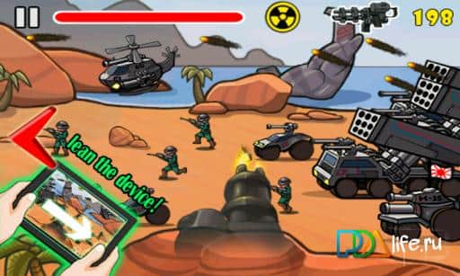 Anger Sniper - это экшен для андроид в рисованной графике с видом от первого лица. Вы выступаете в роли обладателя хорошего арсенала оружия, с помощью которого должны уничтожить всех врагов на видимой локации. Враги представлены в виде разной техники - от танков и ракетниц до солдат и вертолетов. За каждого врага вы получаете очки, за которые потом можно прокачать силу своего героя или же прикупить новое оружие! Или же вам под силу отремонтировать и укрепить базу!
