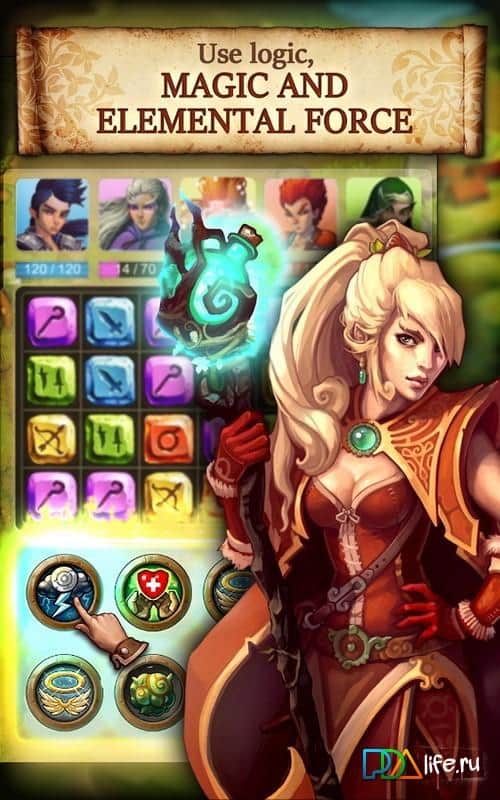 Angoria – увлекательная игра на андроид, из жанра три в ряд, где вам предстоит вернуть мир и спокойствие на земли Ангории. Многие десятилетия землями Ангории управляли старейшины, выбранные из разных народов. На благодатные земли пришли враги метромехи они рассорили всех старейшин и начался хаос. Вашей задачей будет, используя различные стихии не дать врагам захватить земли. Соберите свою армию из разнообразных воинов и участвуйте в многочисленных битвах составляя по три и более фигурок в ряд и нанося сокрушительный удар захватчикам.