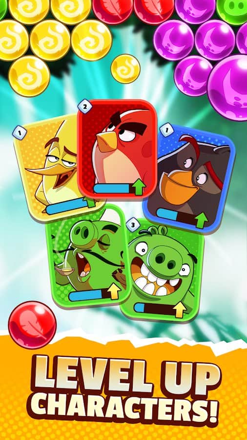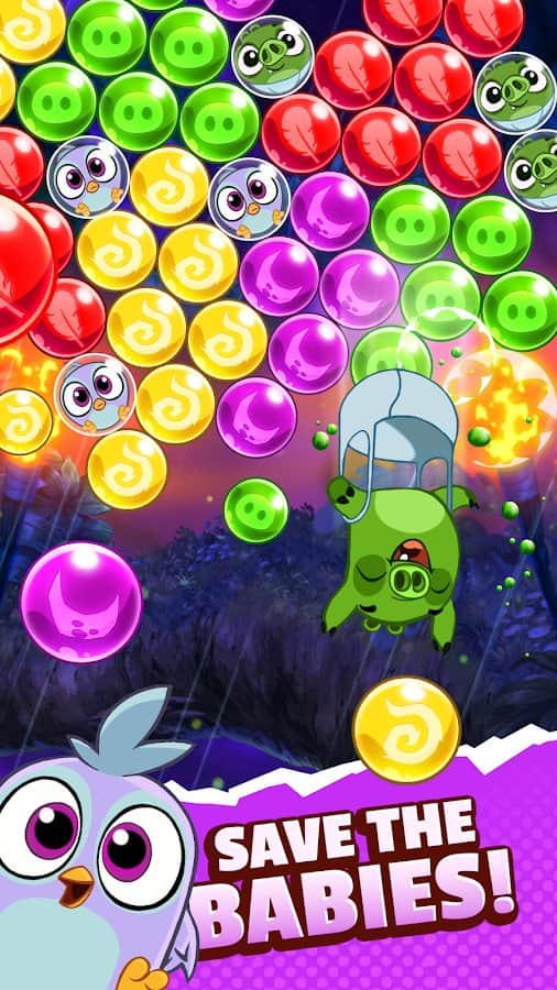 Angry Birds POP 2 – отличная игра на андроид, где вы будете помогать птичкам и свиньям спасать свой мир от пузырей. В этой игре две враждующие стороны объединятся во имя спасения своих детей от пузырей. Огромные группы из пузырей прорвались сквозь порталы в небе и стремятся к земле. Вашей задачей будет стрелять разноцветными пузырями и создавать одинаковые группы из них. Взрывай пузыри и освобождайте птичек и свинок из их плена. Применяйте различные бонусы и усиления, а также используйте уникальные способности разных героев.