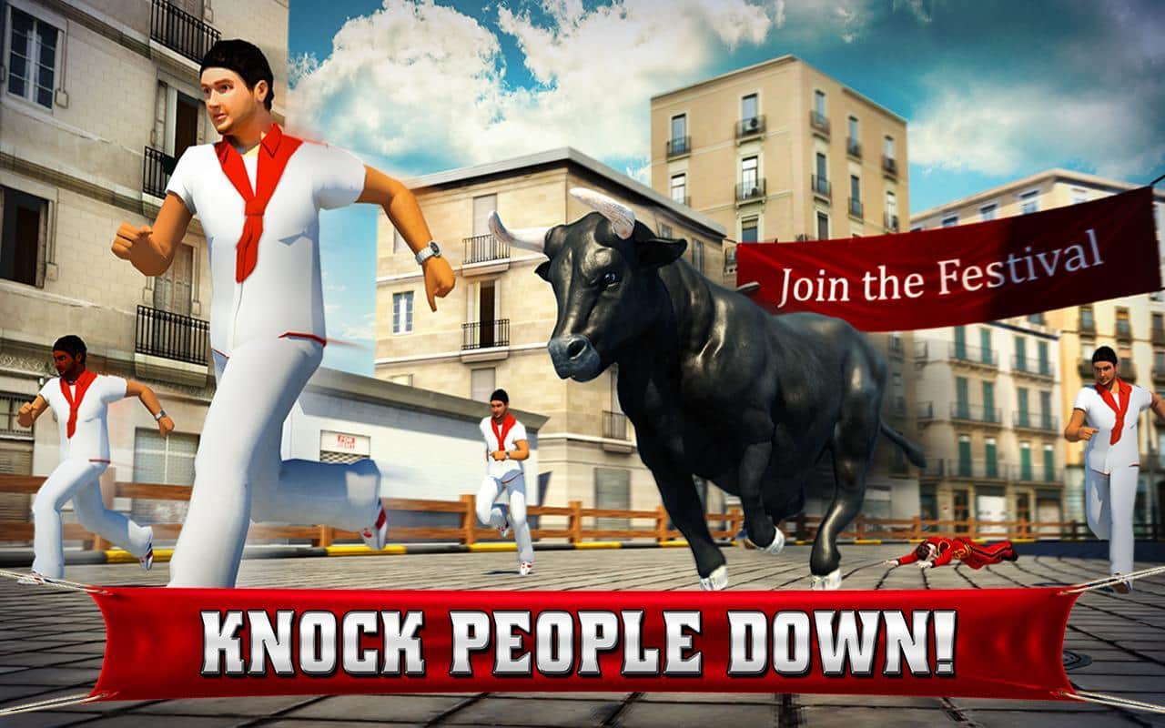 Angry Bull 2016 – посетите Испанию и побывайте на ежегодном национальном празднике энсьерро. Этот день отличается тем, что на улицы городов выпускают разъярённых быков и все желающие могут проверить свои силы и умения в схватке с быком. Испытайте не с чем не сравнимые ощущения, когда за вами бежит огромный бык и пытается забодать вас огромными рогами. Выполняйте поставленные миссии в игре и наслаждайтесь реалистичной графикой и звуками. В этой игре вы сможете выбрать себе подходящего быка определенной расцветки и размеров. Играйте в эту игру и получайте море адреналина от происходящих на экране событий.
