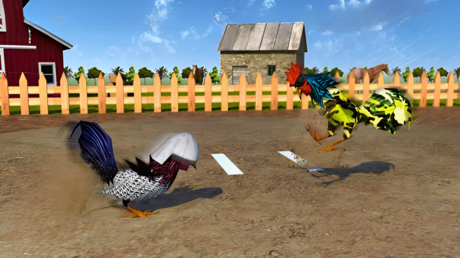 В игре Angry Chicken Fighting Cock- вы сможете окунуться в атмосферу настоящих петушиных поединков на ферме. У нас вы найдете не просто игру, а настоящий 3D симулятор петушиных сражений. Будьте готовы к тому, что ваши пернатые бойцы будут сражаться за звание лучшего петуха на ферме. Вам предстоит вырастить и тренировать своих петушков, чтобы они могли противостоять другим бойцам. Каждый петух имеет свои уникальные способности, которые вам нужно будет раскрыть и использовать в бою. Вы можете выбрать одного из множества петухов и начать свой путь к победе. Разводите и тренируйте своих питомцев, чтобы сделать их сильнее и выносливее. Участвуйте в различных турнирах и соревнованиях, чтобы завоевать репутацию лучшего петушиного тренера.