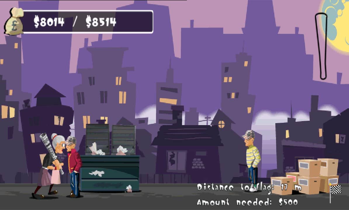 Слышали как старшее поколение ругает сегодняшнее время...О! поди и не раз! Так вот - и у них не выдерживают нервы. И как это не странно, есть еще порох в пороховницах! Ваша героиня - обычная бабуля, которая вышла на улицы города с единственной целью - разобраться с беспорядками, беспределом и безнравственностью...Но времени особо разбираться у нее нет, и она начинает наказывать всех подряд и чем попало - газета, дубинка и даже меч Люка Скайуокера! Все идет в ход...Власти не могут с ней справиться, потому как простая пенсионерка вы вызывает ни у кого подозрения. И прохожим ничего не остается, как откупиться от нее. Так, наша сердитая бабуля получает существенную прибавку к пенсии. А уж на заработанные деньги, она что думаете делает? Не, не угадали - покупает новое и более совершенное оружие и снова на улицы, к баррикадам!!!! Так что помогайте вашей воительнице пополнить свои денежные запасы!