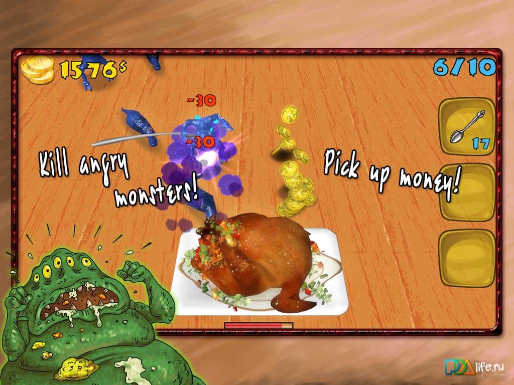 Angry Monsters 3d - смешная игра аndroid, в которой вам предстоит истребить кухонных монстров. Они пытаются съесть все запасы вашей еды и вам нужно их уничтожить. Для этого все методы хороши, в ход идет все - ложки, вилки, молоток и палец. Хорошая графика, захватывающий геймплей и полчища разнообразных монстров, не дадут вам скучать. Истребите всех монстров и верните свою любимую еду.