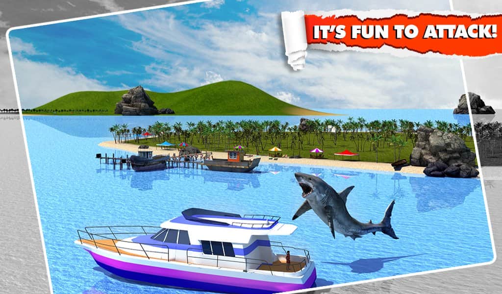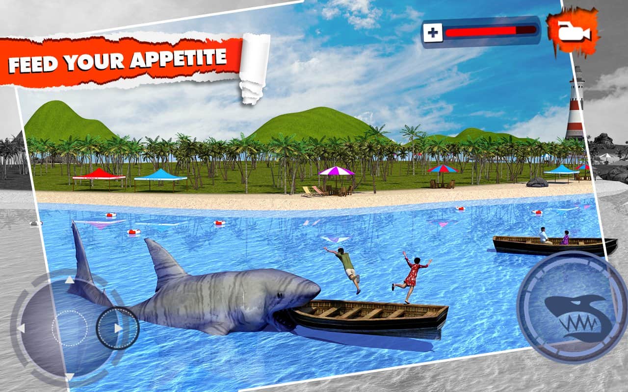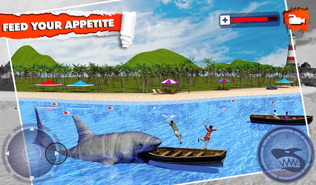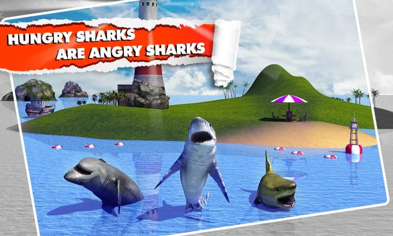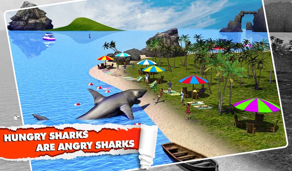 Angry Shark Simulator 3D - в этой игре вы будете выступать на стороне сил зла, где вам предстоит управлять акулой пожирающей людей. Плавайте по открытому морю и хватайте своими острыми зубами людей попадающихся у вас на пути, а также выплывайте на берег и тоже самое проделывайте там. На ваш выбор будет три различные акулы, каждая имеет свои характеристики и особенности.