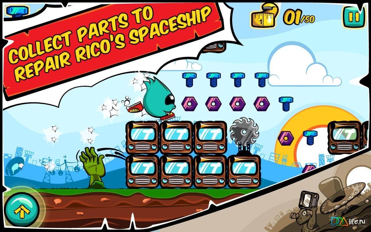 Angry Zombies vs Running Rico - игра на андроид, в которой Рико инопланетянин, пытается спасти мир от зла, помогите ему в этом. Бегайте, прыгайте и совершайте различные трюки все для того чтобы прийти к финишу за короткое время. При этом не забывайте собирать бонусы, они откроют дополнительные возможности. Отличная графика с тремя хорошо разработанными мирами привлекут ваше внимание надолго.