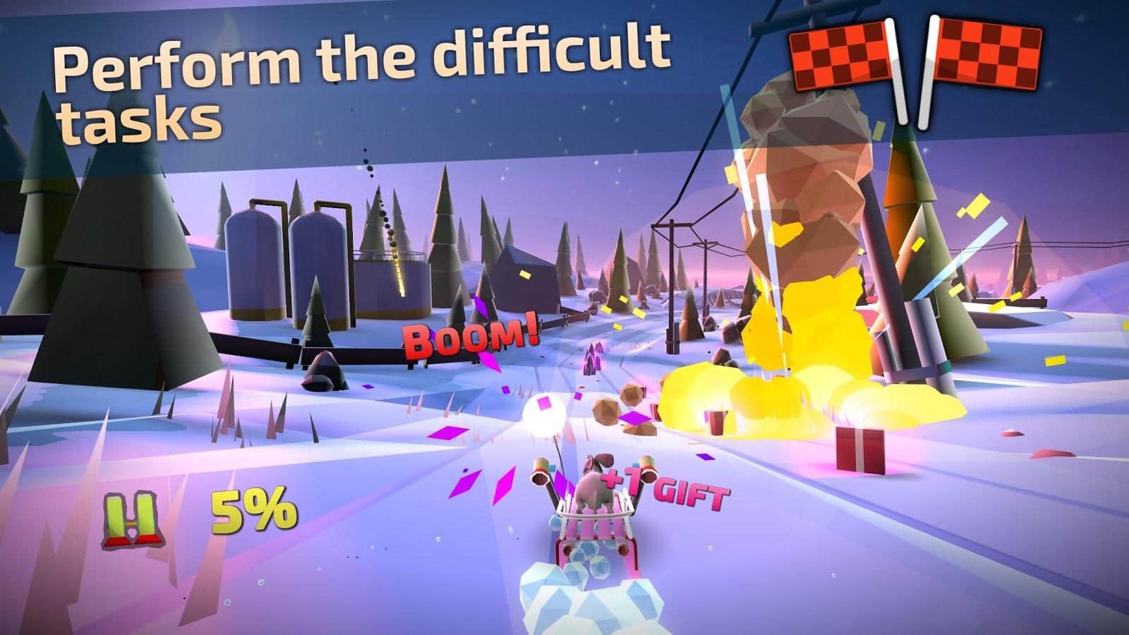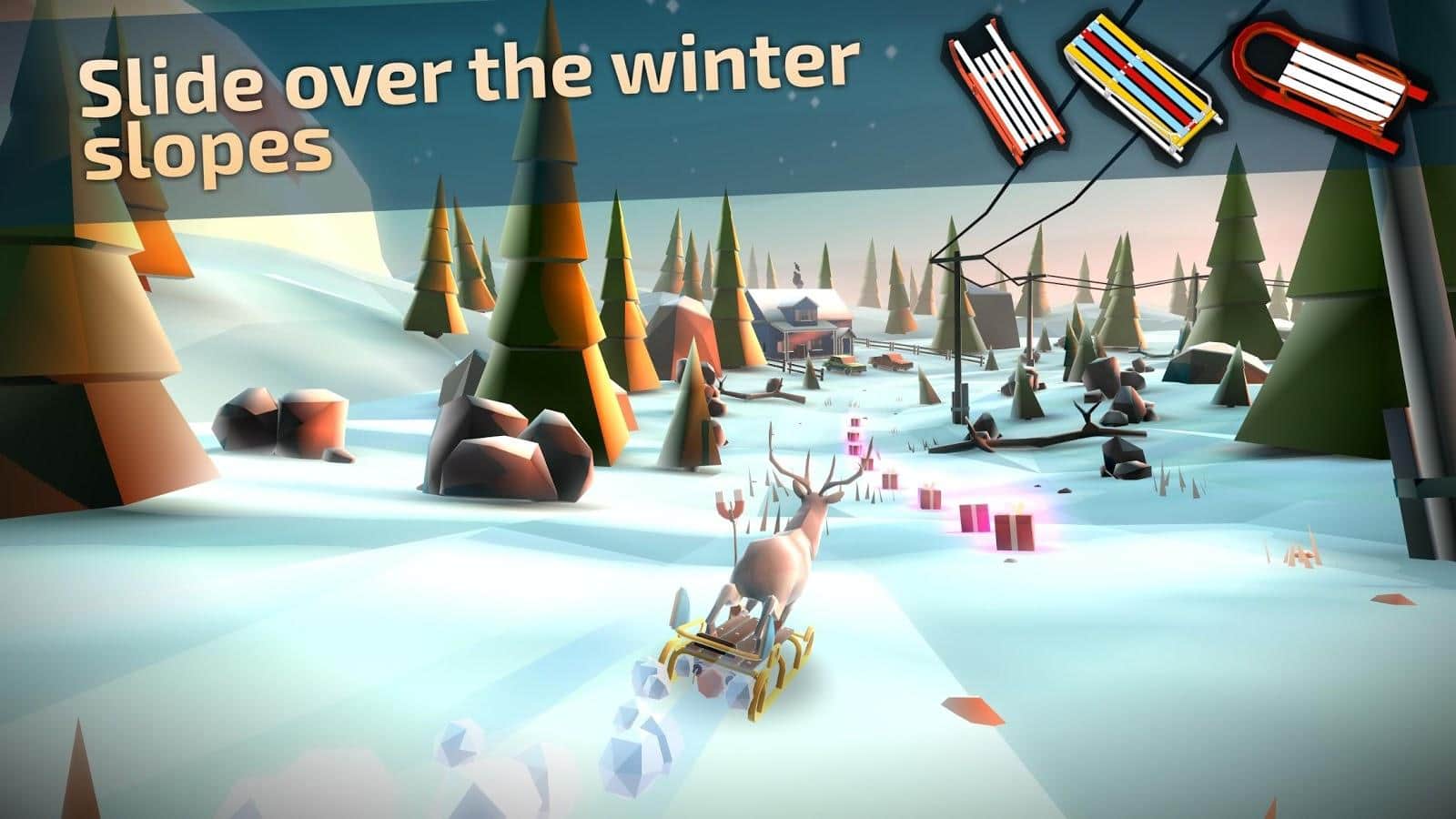 Animal Adventure: Downhill Rush – раннер на андроид, где вы будете ездить на санках по заснеженным пейзажам. Зима надвигается и появляется рождественское настроение. Возьмите в руки санки и отправляйтесь навстречу приключениям в этой игре. Ездите по различным локациям игры по городу, деревне, заснеженным горам и замершим рекам. По пути обходите многочисленные преграды в виде бегущих медведей и движущихся машин. Собирайте бонусы и подарки в виде ускорителей, усилителей энергии, бомб и многого другого. Откройте новых персонажей и разблокируйте уникальные санки.